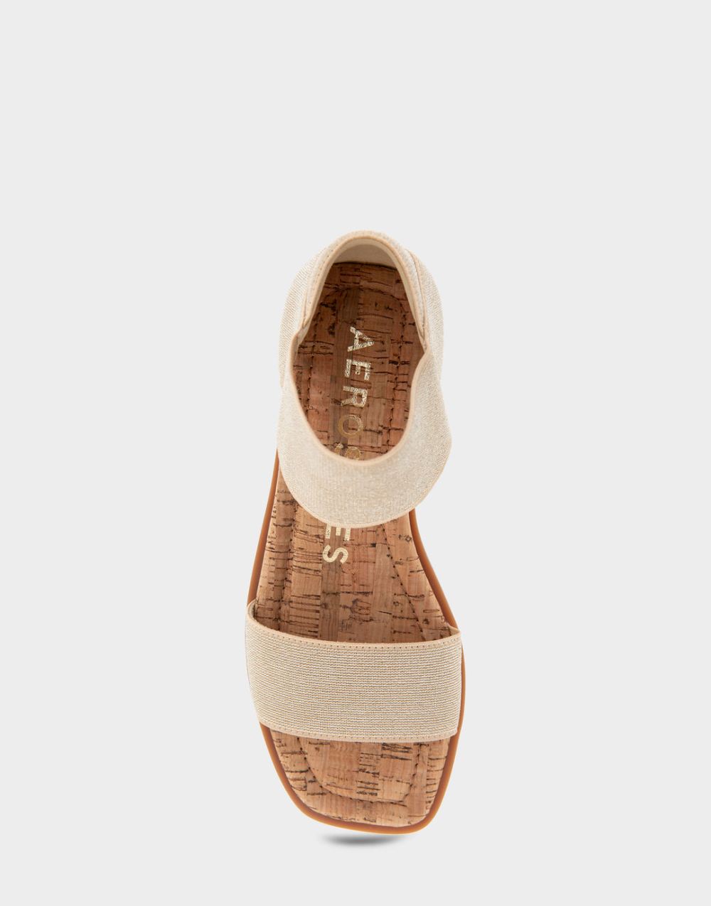 Aerosoles Women's Bente Soft Gold Elastic Banded Mini Wedge Sandal