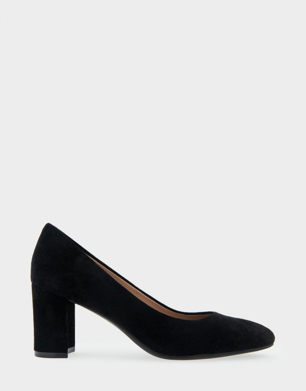 The Betsy is a comfortable women's Black Genuine Suede Mid Heel Pump. This women's chunky heel Mid Heel Pump is ideal for everyday. Rich with shoe comfort, the Betsy Mid Heel Pump in Black Genuine Suede features a diamond flex outsole, a ortholite foam insole, a slip lasted front and even more advanced shoe comfort technologies. The Betsy comfortable womens shoe Mid Heel Pump in Black Genuine Suede includes free shipping and free returns on all orders over $75.