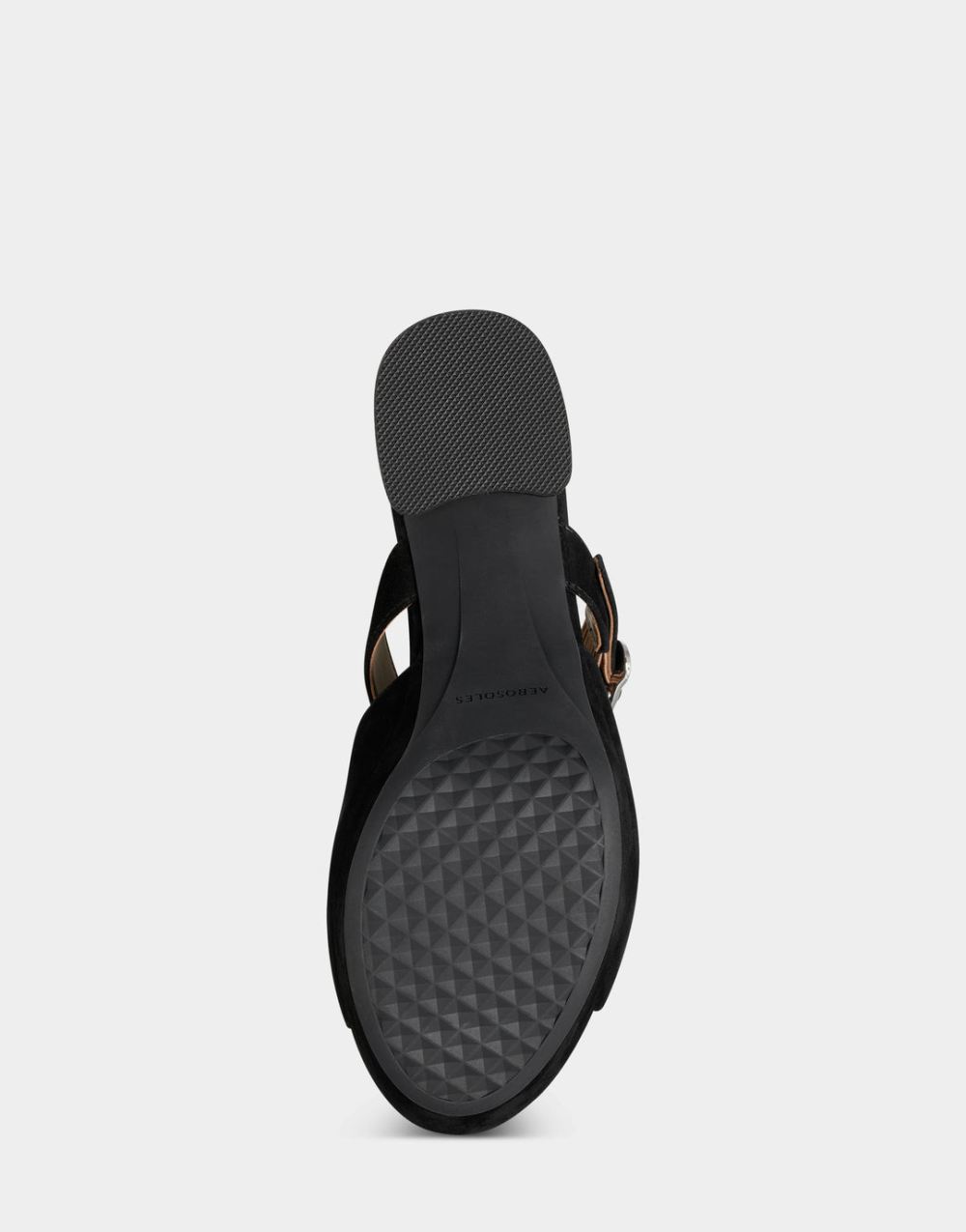Aerosoles Women's Black Italian Suede Platform Retro Sandal Mule with Buckle Cosmic