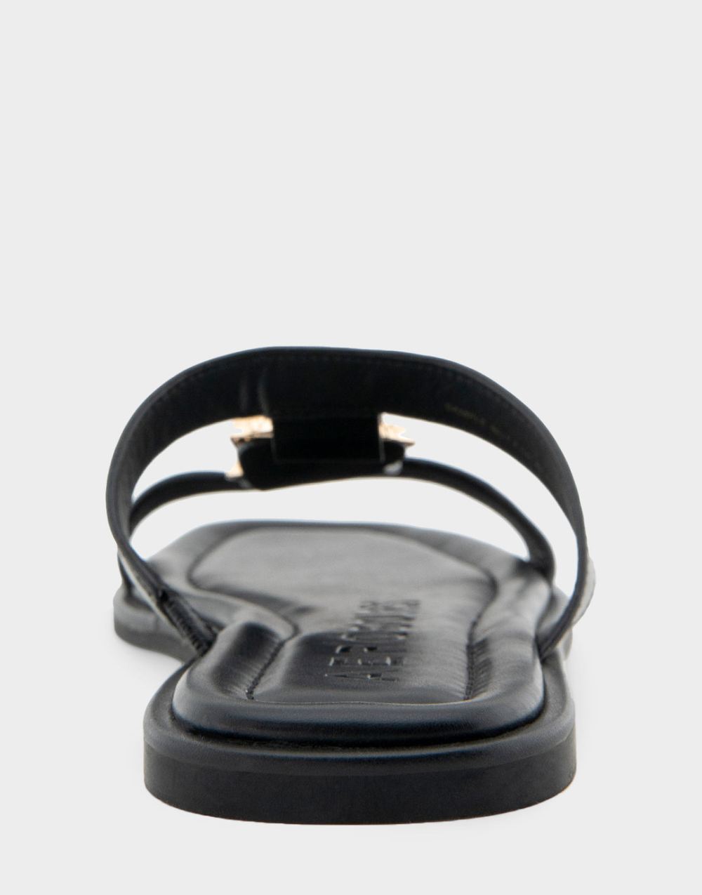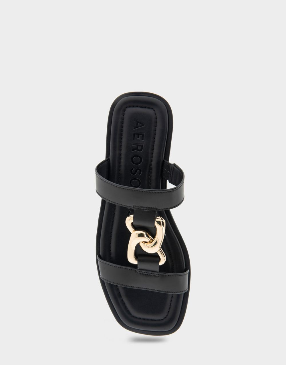 Aerosoles Women's Boston Black Leather Ornamented T-Strap Slide Sandal