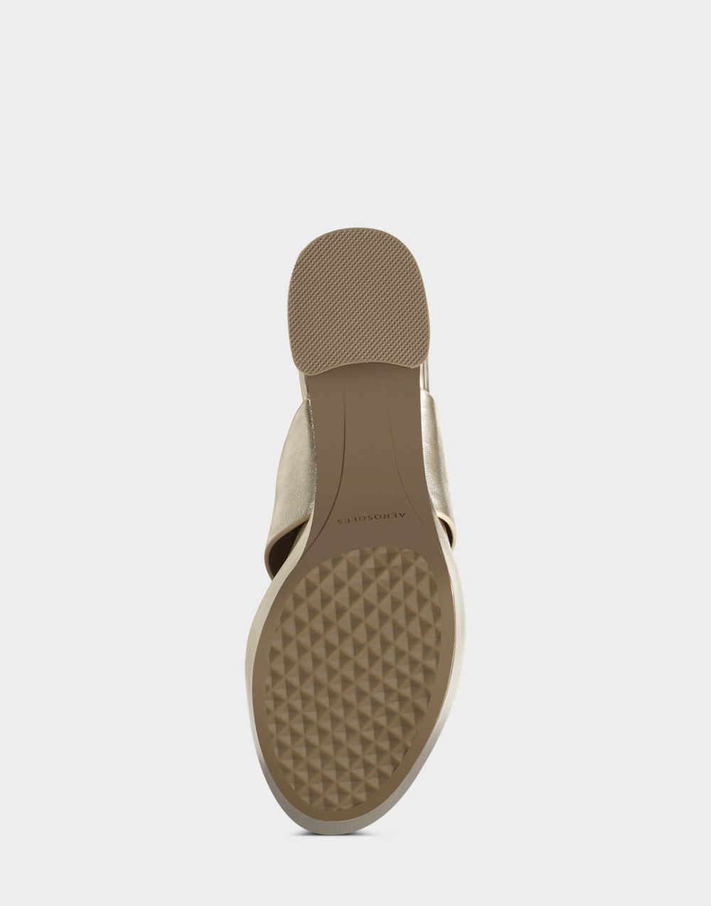 Aerosoles Women's Camera Gold Metallic Leather Platform Block Heel Sandal with Buckle