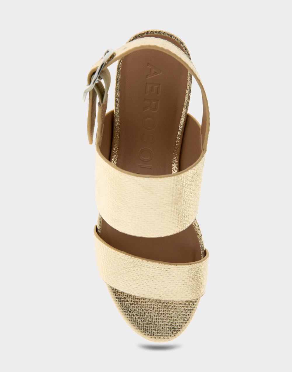Aerosoles Women's Camera Soft Gold Canvas Faux Leather Platform Block Heel Sandal with Buckle202343