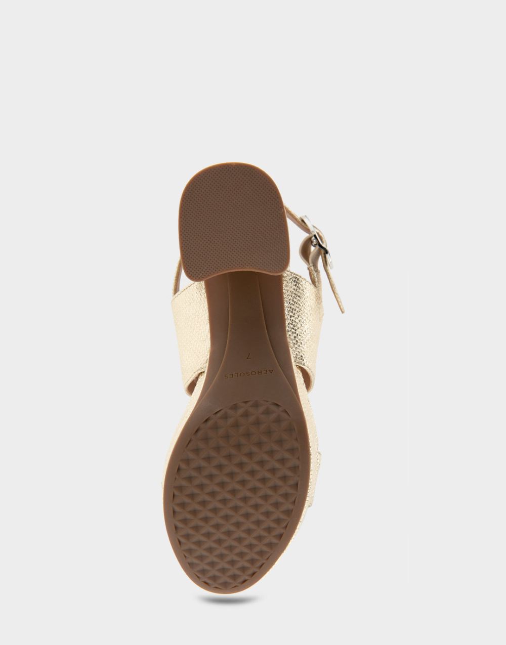 Aerosoles Women's Camera Soft Gold Canvas Faux Leather Platform Block Heel Sandal with Buckle