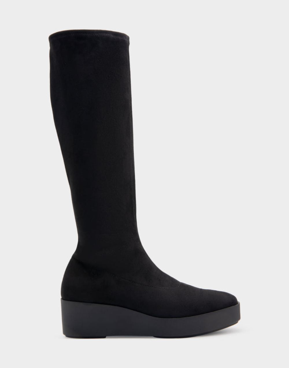 Aerosoles Women's Cecina Black Stretch Faux Suede Flatform Heel Tall Shaft Boot