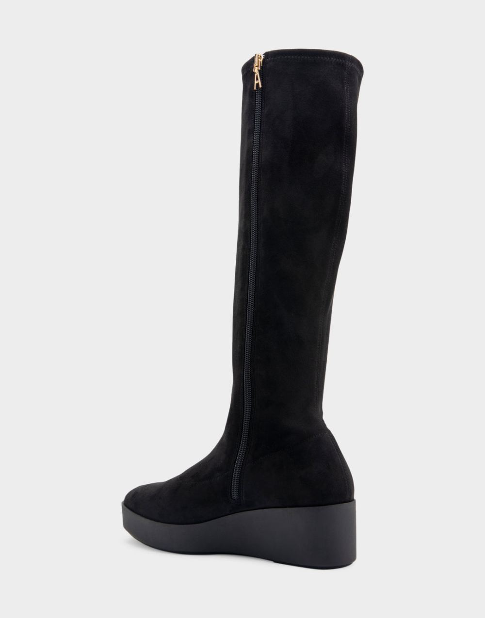 Aerosoles Women's Cecina Black Stretch Faux Suede Flatform Heel Tall Shaft BootQ51Q31