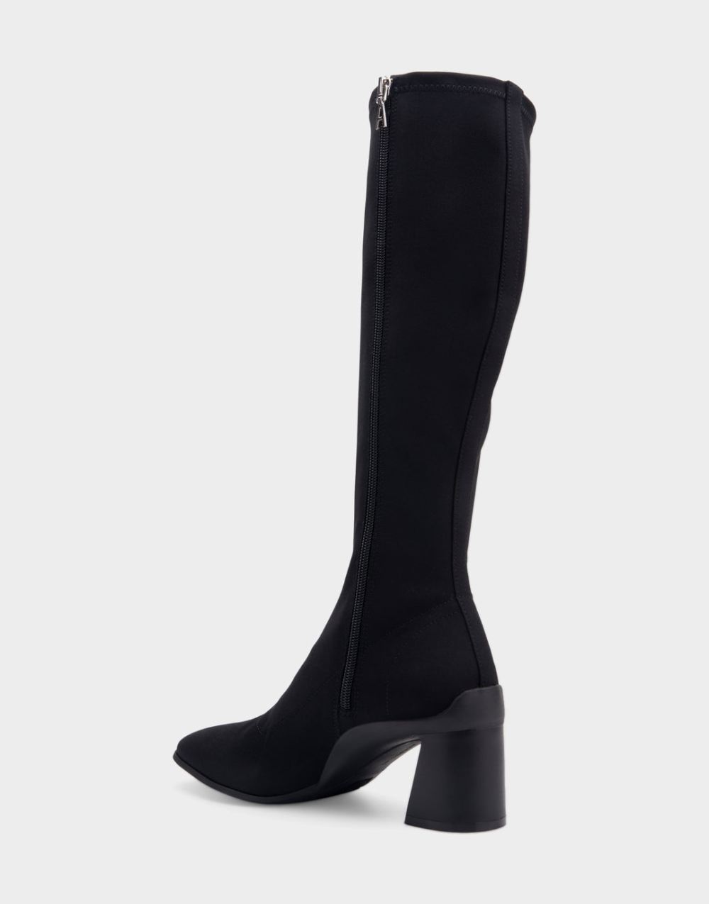 The Centola is a comfortable women's Sculpted Heel Tall Shaft Boot in Black Stretch Gabardine Fabric. This women's block heel Sculpted Heel Tall Shaft Boot is great for everyday. Rich with shoe comfort, the Centola Sculpted Heel Tall Shaft Boot in Black Stretch Gabardine Fabric possesses a diamond flex outsole, a removable ortholite foam insole, a ortholite aerofly molded footbed and even more amazing shoe comfort features. The Centola comfortable womens shoe Sculpted Heel Tall Shaft Boot in Black Stretch Gabardine Fabric comes with free shipping and free returns if your order is over $75.