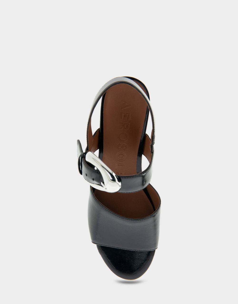 Aerosoles Women's Chamber Black Patent Faux Leather Quarter Strap Platform Sandal