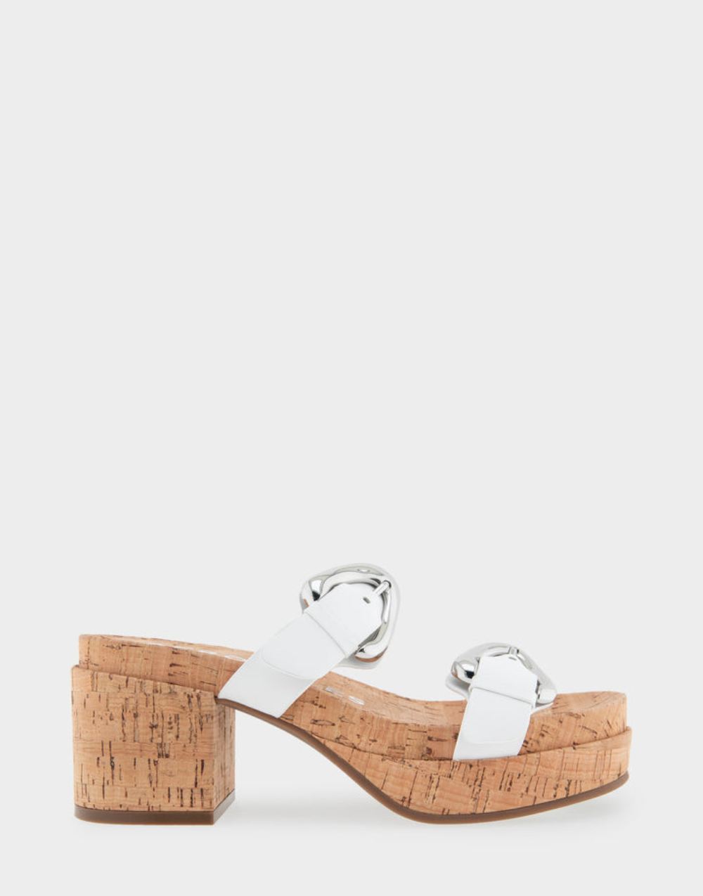 Aerosoles Women's Chance White Leather Molded Footbed Platform Slide Sandal