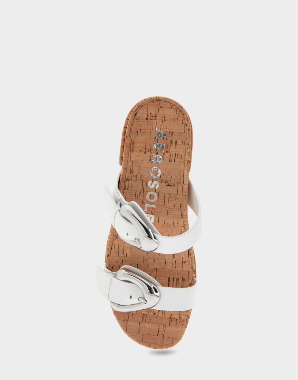 Aerosoles Women's Chance White Leather Molded Footbed Platform Slide Sandal268c52