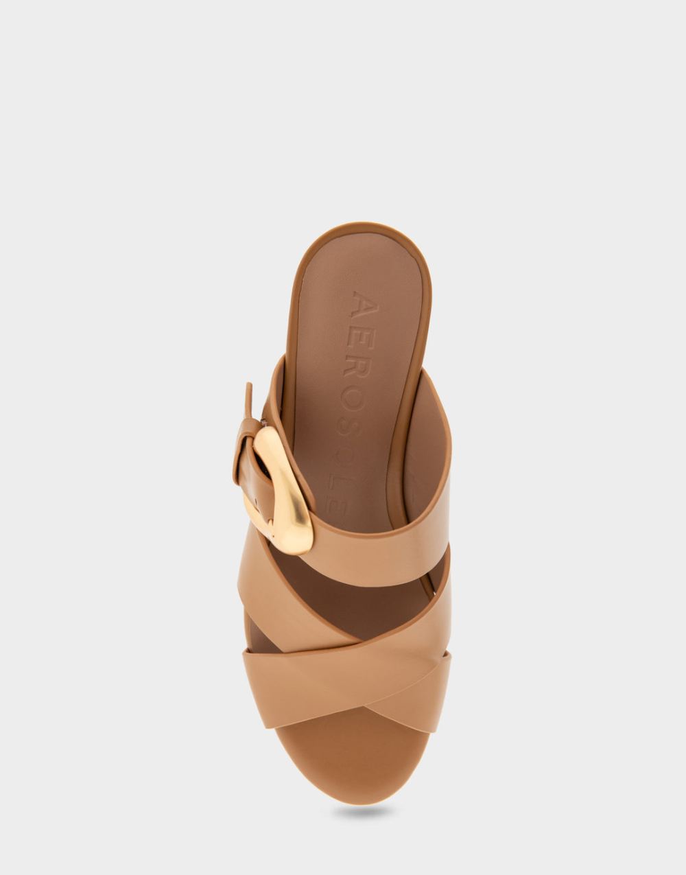 Aerosoles Women's Collin Doe Leather Crisscross Platform Slide Sandal