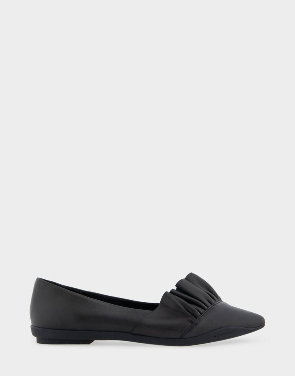 Aerosoles Women's Dillion Black Genuine Leather Ruffled Point Toe Flat