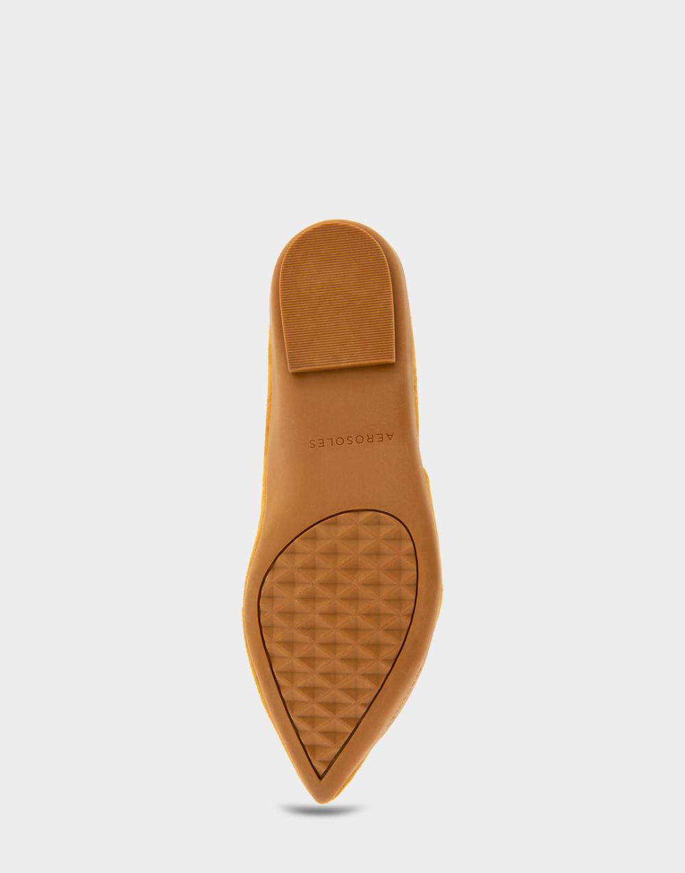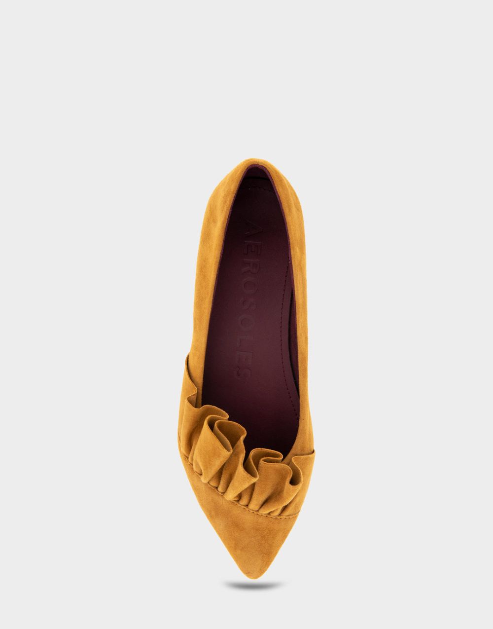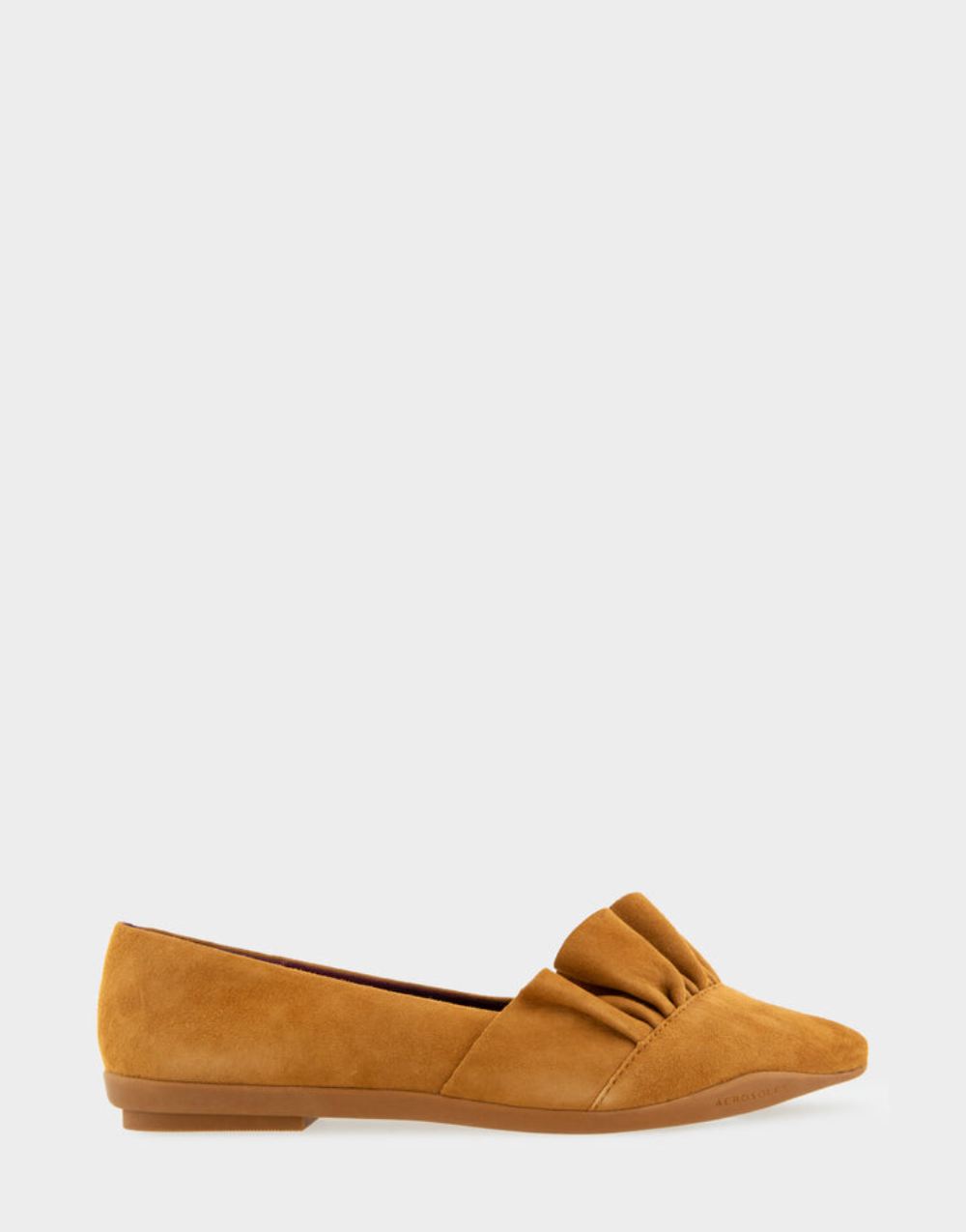 Aerosoles Women's Dillion Dark Ochre Genuine Suede Ruffled Point Toe Flat