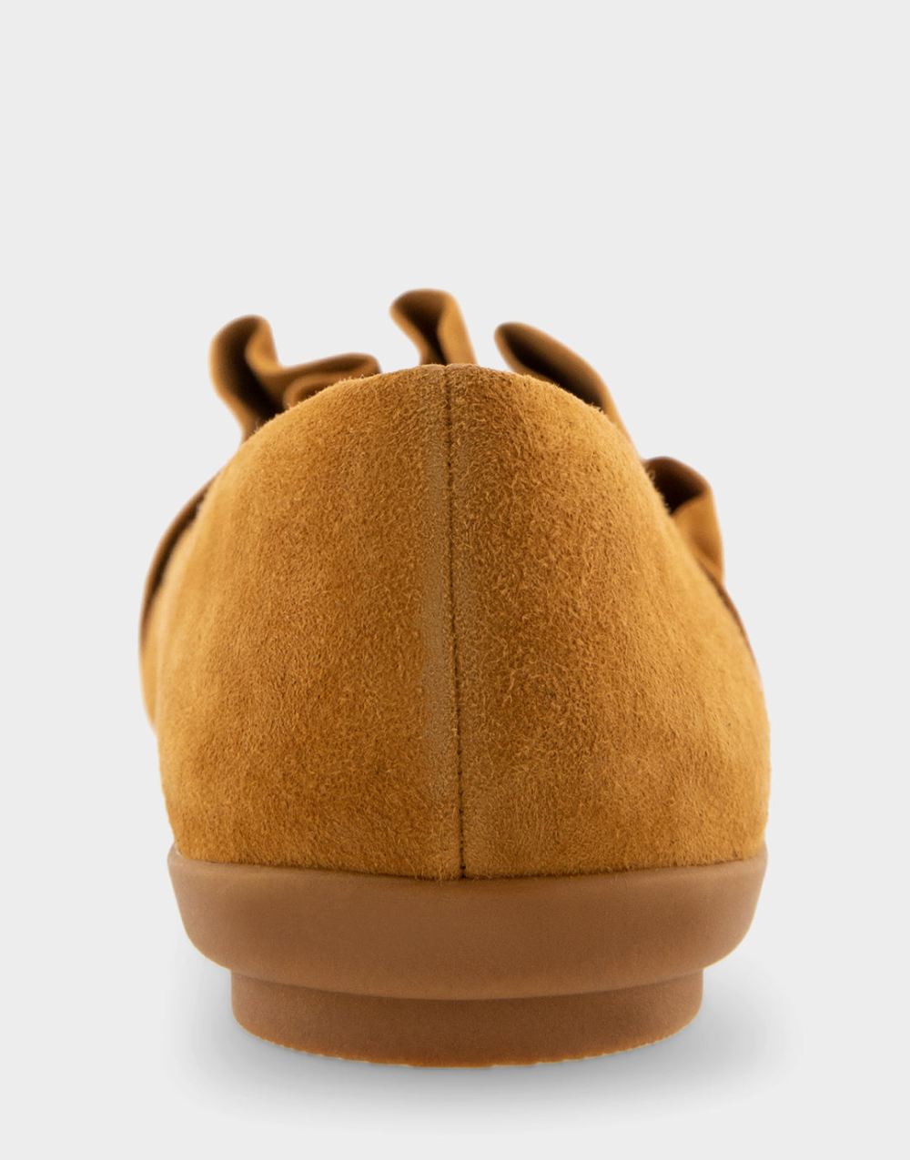 This comfortable women's shoe Dillion is a Ruffled Point Toe Flat in Dark Ochre Genuine Suede. This women's flat heel Ruffled Point Toe Flat is ideal for everyday. Loaded with shoe comfort, the Dillion Ruffled Point Toe Flat in Dark Ochre Genuine Suede has a molded diamond flex outsole, a ortholite foam insole, a stroble and many more advanced shoe comfort features. The Dillion comfortable womens shoe Ruffled Point Toe Flat in Dark Ochre Genuine Suede comes with free shipping and free returns for all orders over $75.