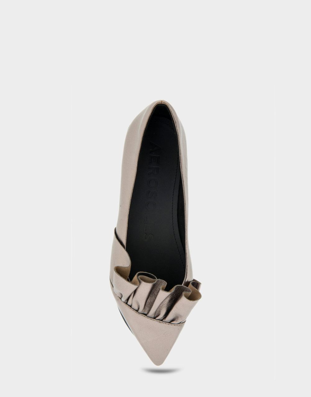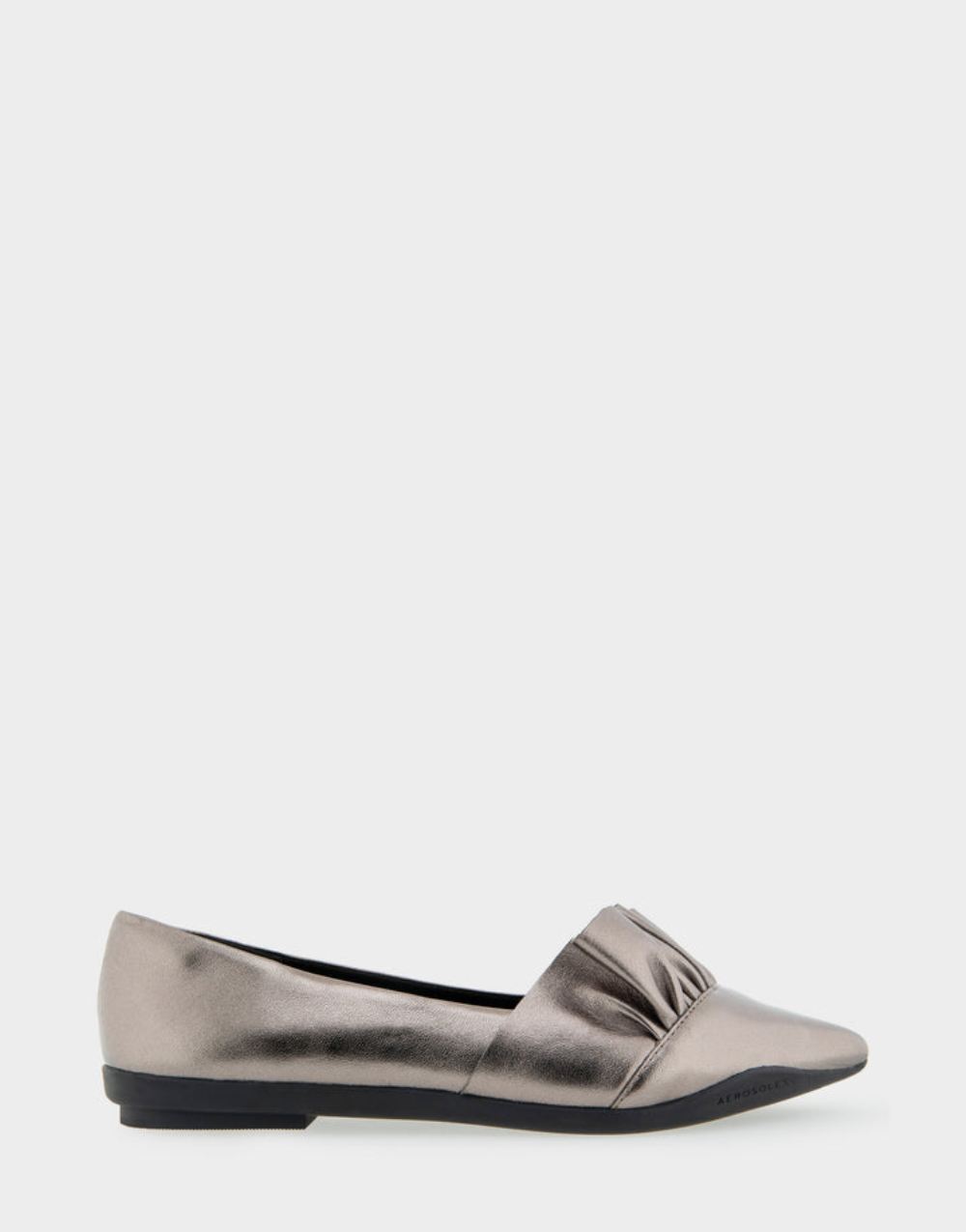 Aerosoles Women's Dillion Graphite Genuine Leather Ruffled Point Toe Flat