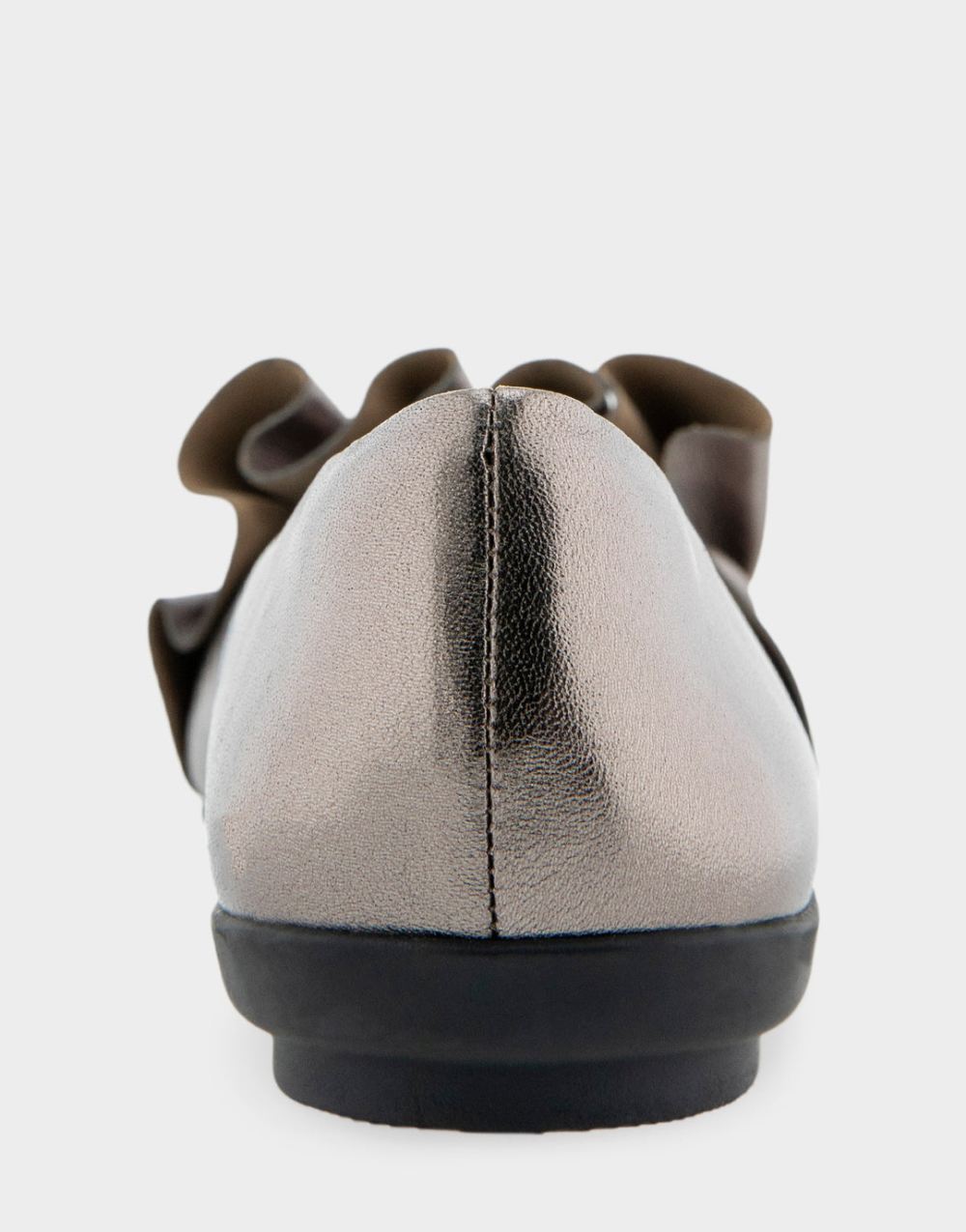 The Dillion is a comfortable women's Ruffled Point Toe Flat in Graphite Genuine Leather. This women's Ruffled Point Toe Flat possesses a flat heel and is perfect for everyday. Loaded with shoe comfort, the Dillion Ruffled Point Toe Flat in Graphite Genuine Leather features a molded diamond flex outsole, a ortholite foam insole, a stroble and even more superior shoe comfort technologies. The Dillion comfortable womens shoe Ruffled Point Toe Flat in Graphite Genuine Leather can be purchased with free shipping and free returns on all orders above $75.