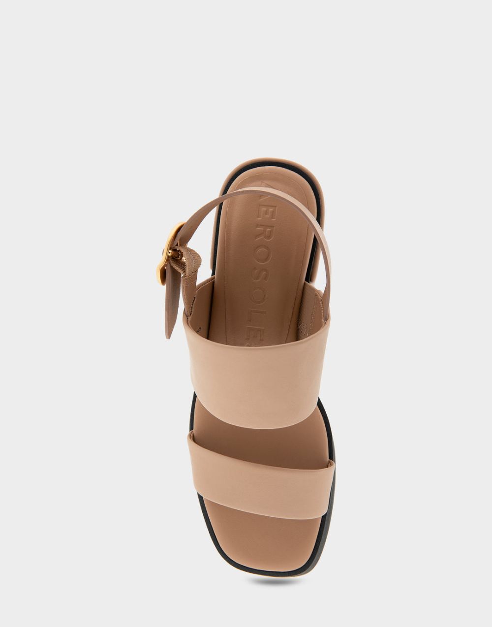 Aerosoles Women's Dove Natural Faux Leather Banded Back Strap Low Block Heel Sandal5C1H6w