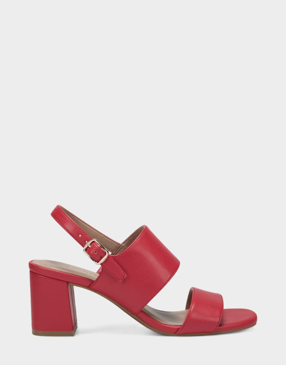Aerosoles Women's Emmex Red Faux Leather Heeled Sandal with Ankle Strap