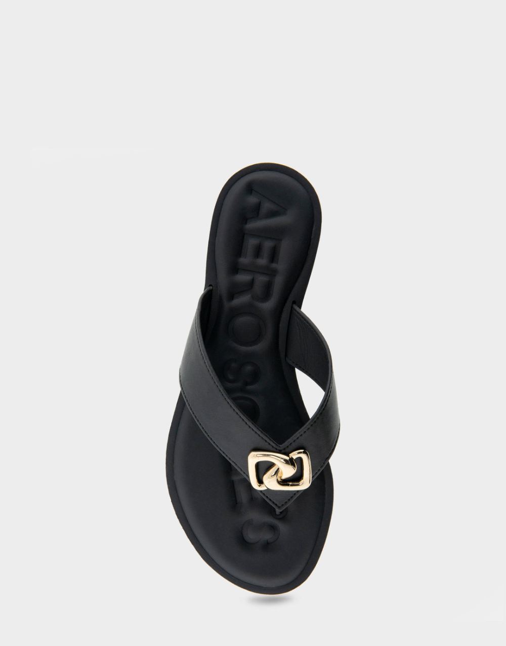 Aerosoles Women's Galen Black Faux Leather Ornamented Thong SandalhuxJcP
