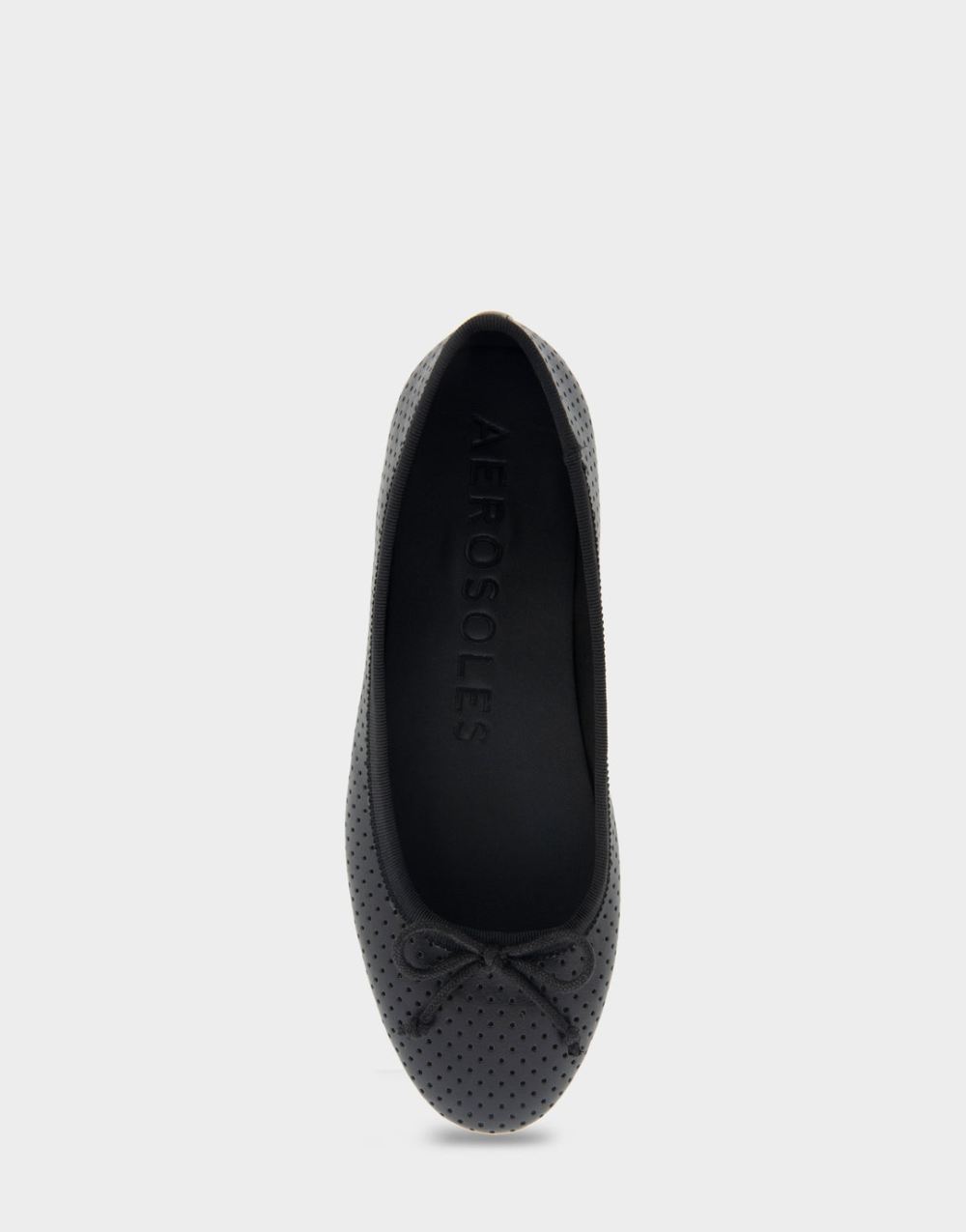 Aerosoles Women's Homebet Black Perforated Faux Leather Hidden Mini Wedge Ballet FlatGSf2vA
