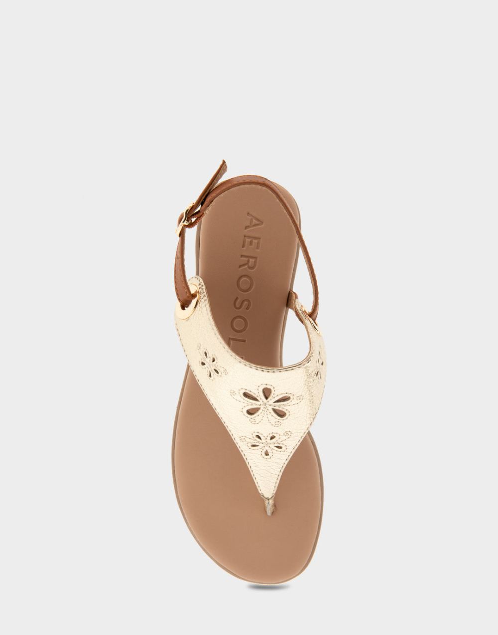 Aerosoles Women's Inesse Soft Gold Faux Leather Laser Cut Slingback Thong SandalK1YAs4