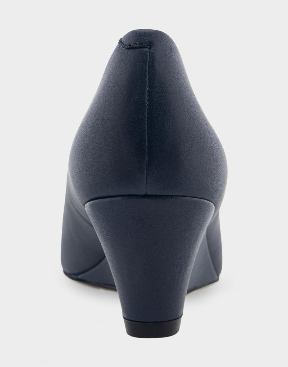 The Iris is a comfortable women's Wedge Pump in Navy Genuine Leather. This women's Wedge Pump includes a wedge heel and is great for everyday. Rich with shoe comfort, the Iris Wedge Pump in Navy Genuine Leather possesses a diamond flex outsole, a ortholite foam insole and many other amazing shoe comfort technologies. The Iris comfortable womens shoe Wedge Pump in Navy Genuine Leather can be purchased with free shipping and free returns on all orders above $75.