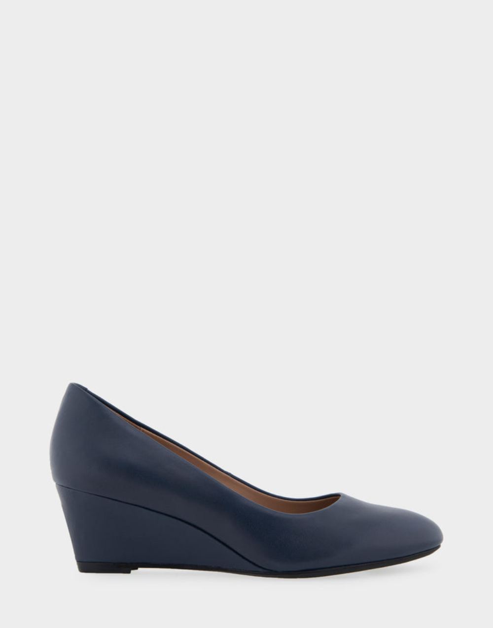 Aerosoles Women's Iris Navy Genuine Leather Wedge Pump