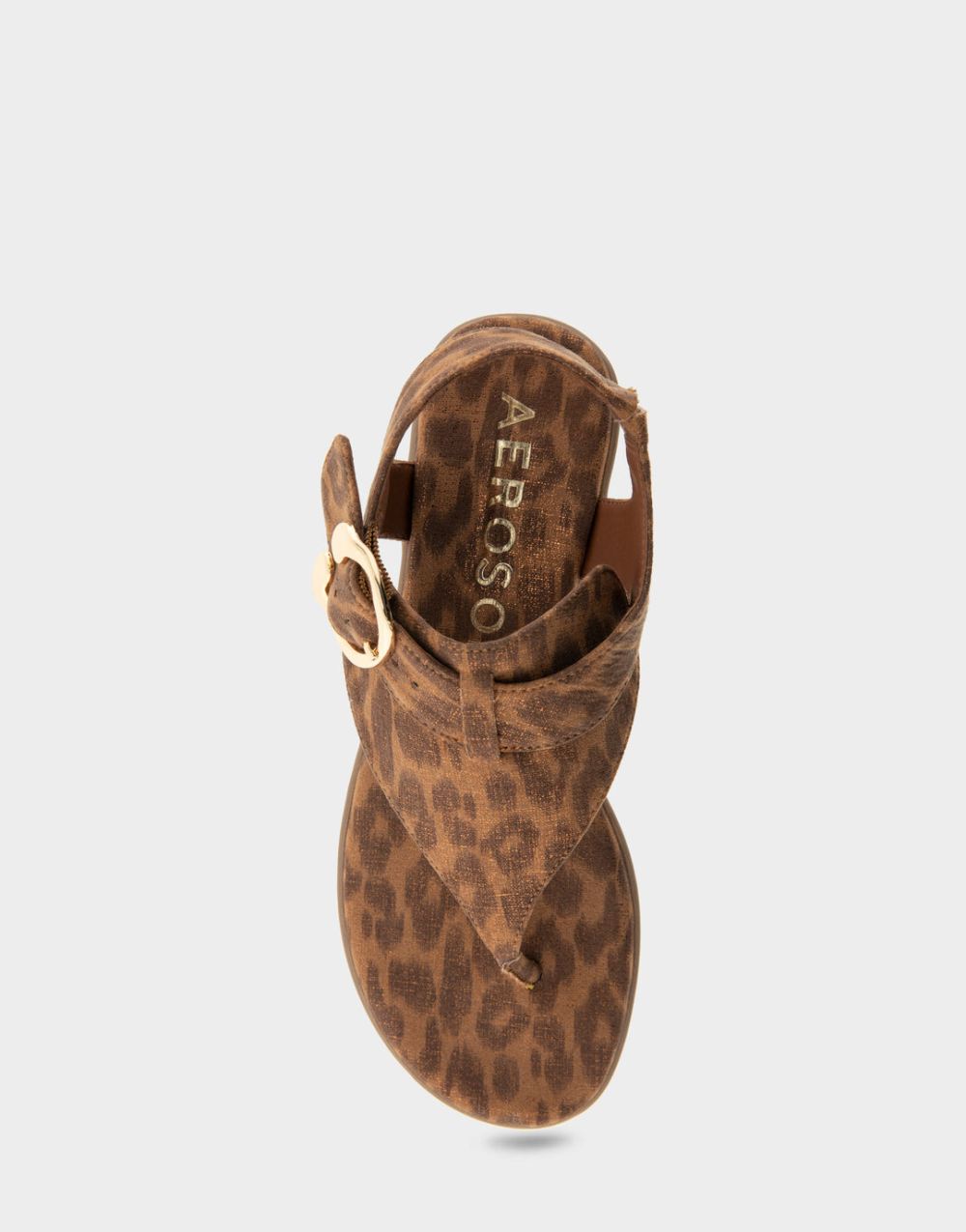 Aerosoles Women's Isa Leopard Metallic Faux Suede Buckle Detail Back Strap Thong Sandal