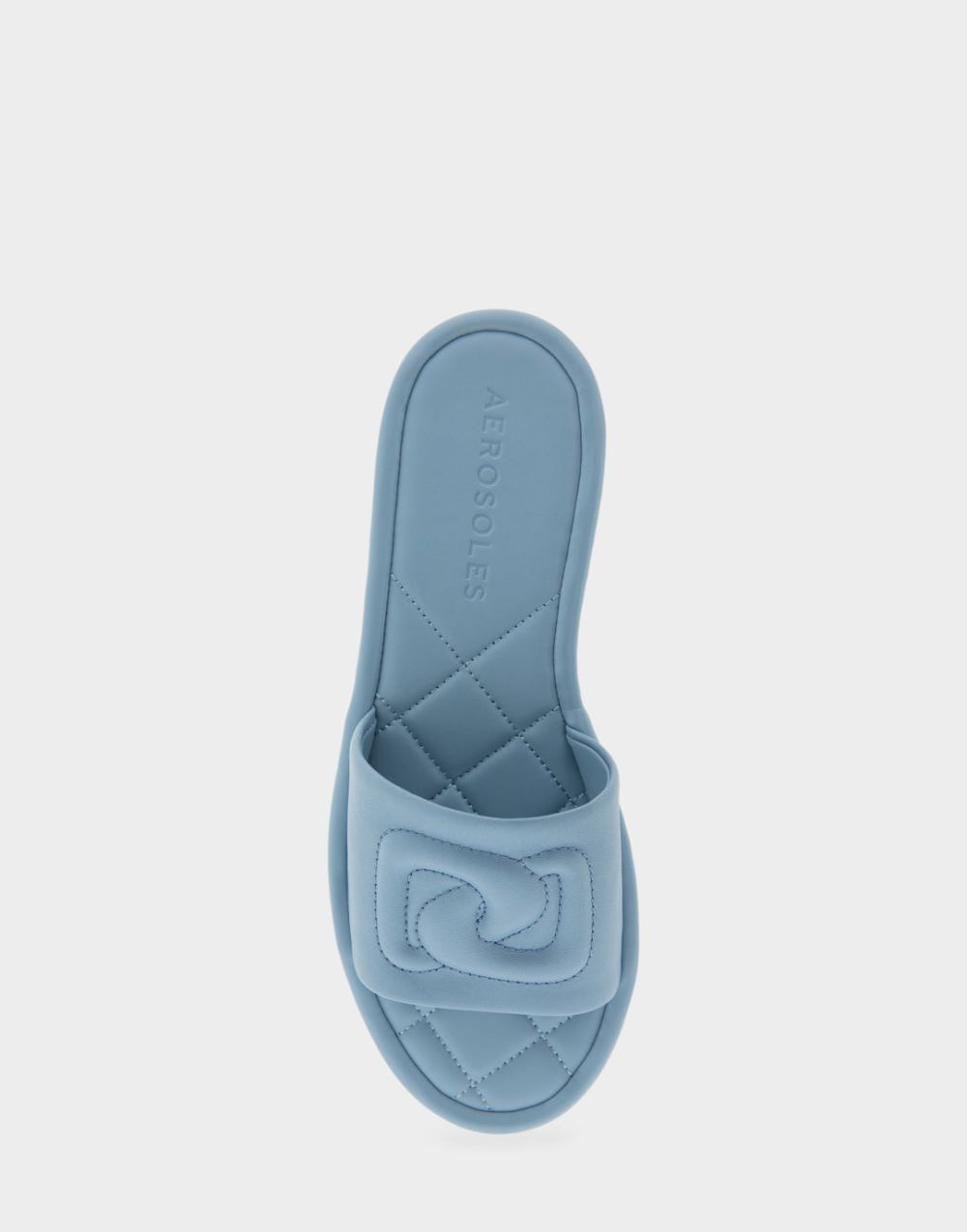 Aerosoles Women's Jilda Dusty Blue Leather Debossed Chain Link Slide Sandal