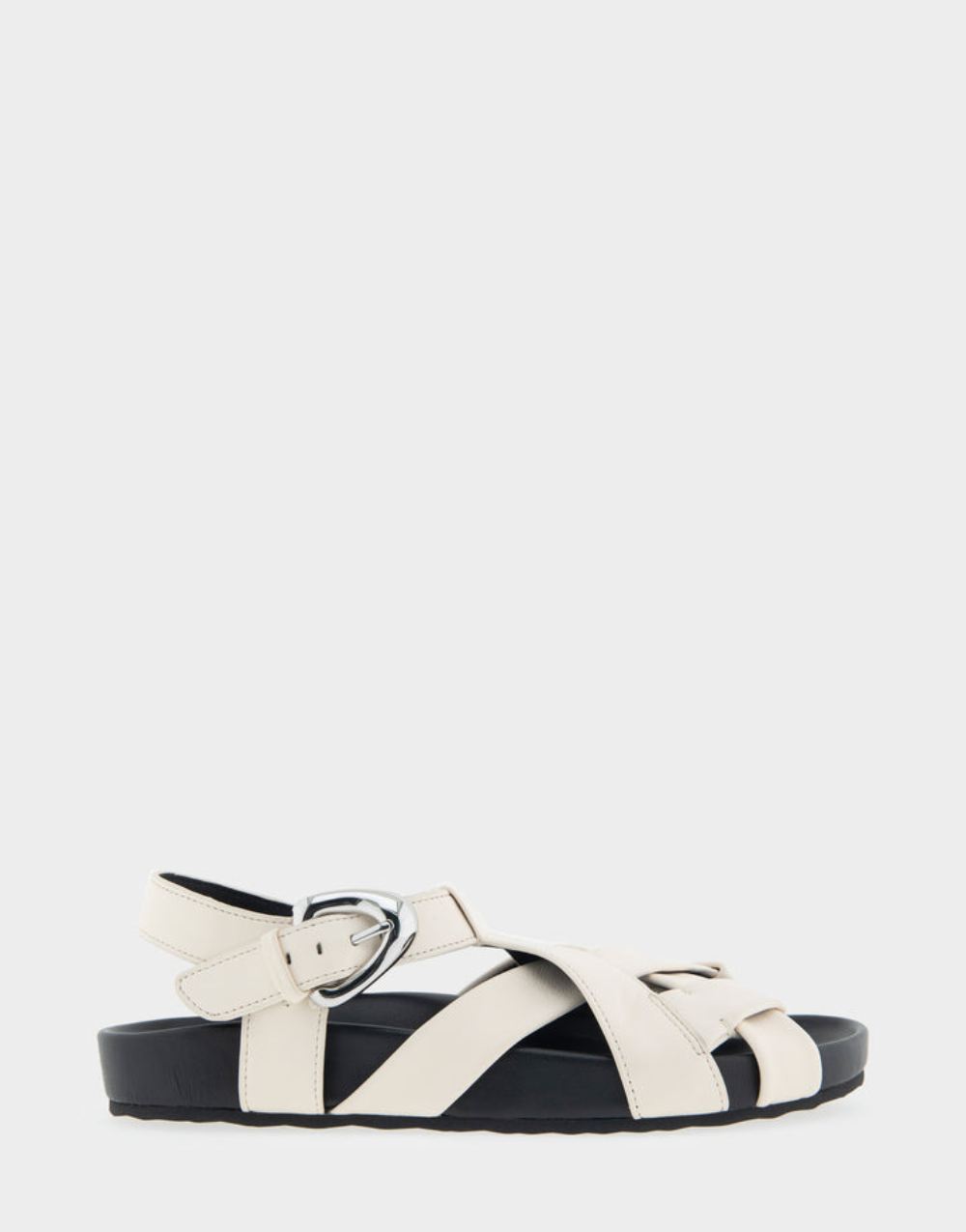 Aerosoles Women's Leon Eggnog Leather Woven Fisherman Footbed Sandal