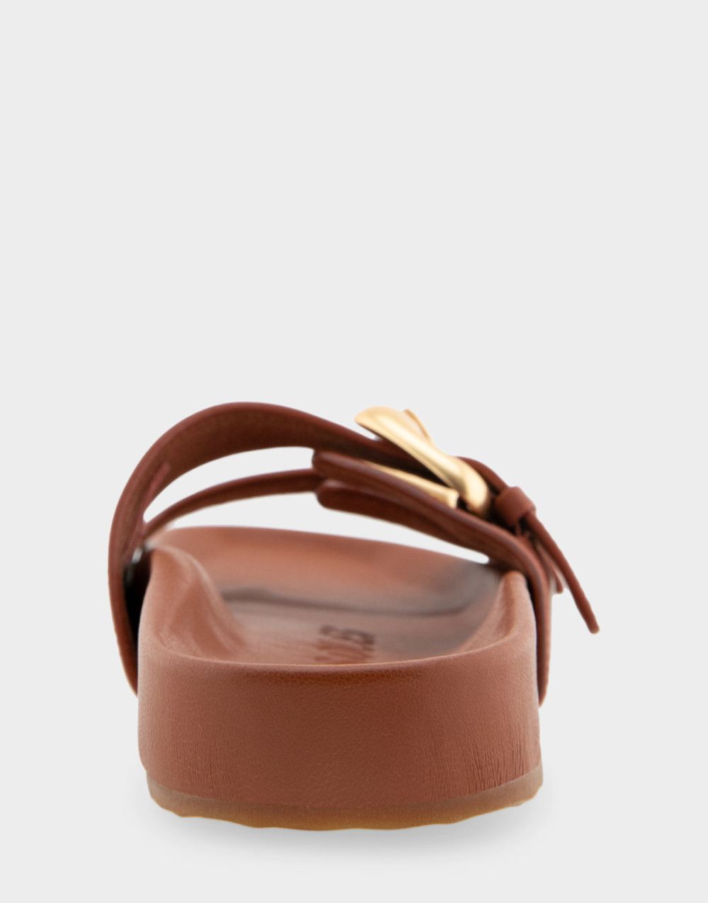Aerosoles Women's Link Gingerbread Leather Two Band Molded Footbed Sandal