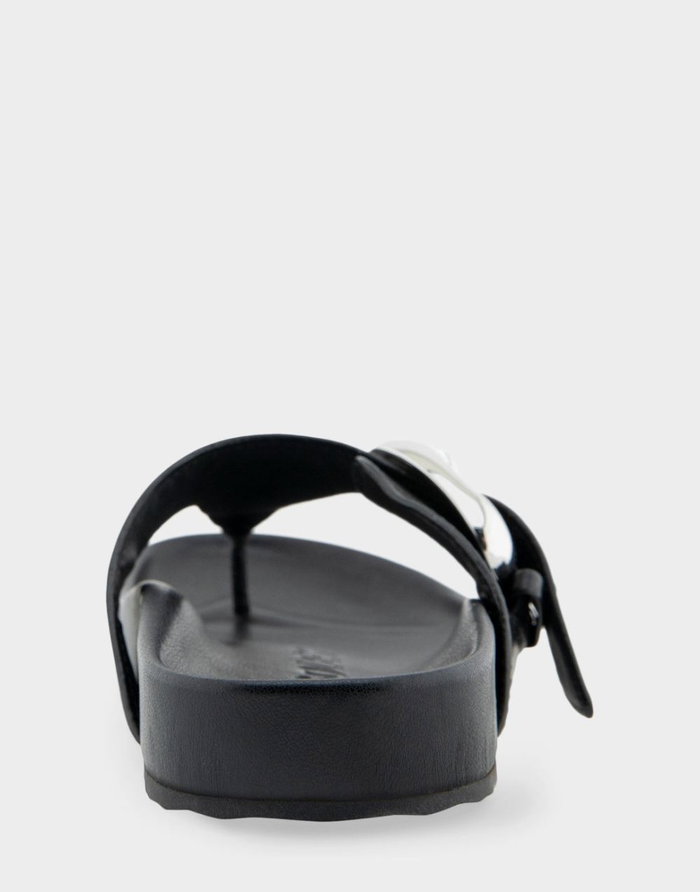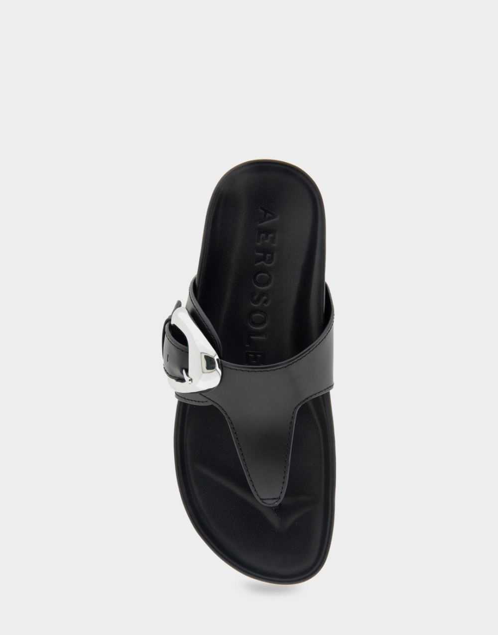 Aerosoles Women's Lloyd Black Leather Oversized Buckle Molded Footbed Thong Sandal2UeDBY