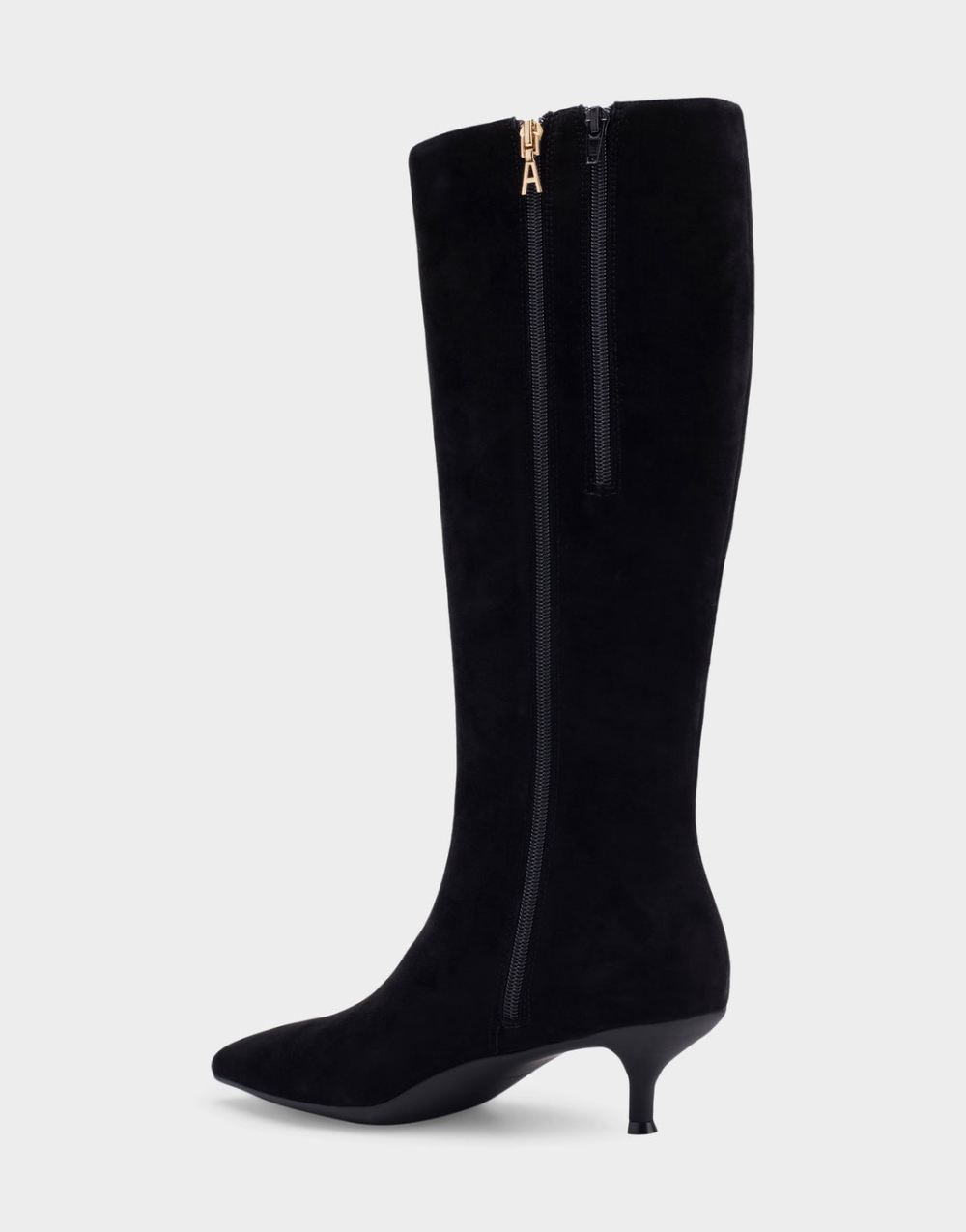 Aerosoles Women's Loano Black Genuine Suede Kitten Heel Tall Shaft Boot
