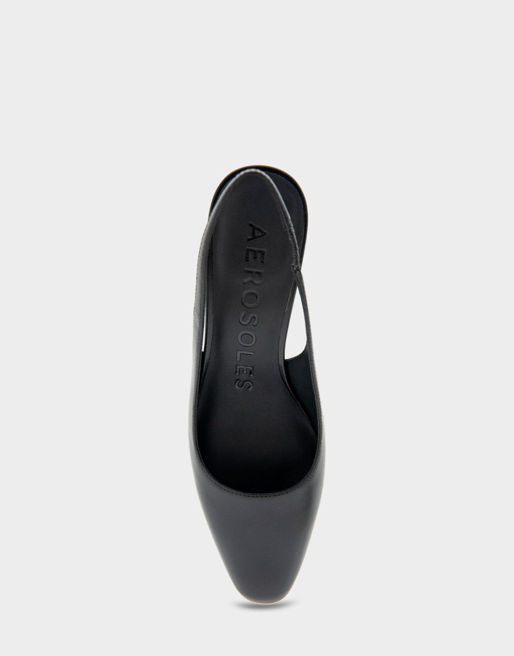 Aerosoles Women's Mags Black Leather Slingback Mid-Heel Pump