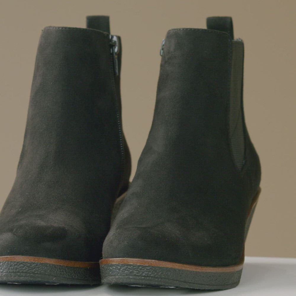 A wedge with an edge: the high-enough yet walkable heel adds endless versatility to the Brandi ankle boot. You'll wear it everywhere, from your commute to the office and all weekend long. Finished with a zipper closure and goring on the sides.