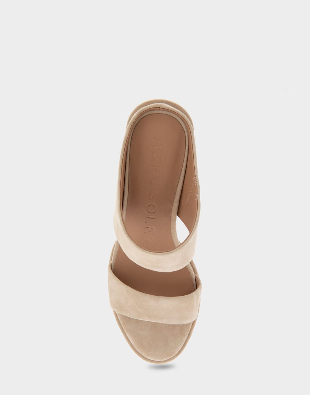 Aerosoles Women's Nika Pale Khaki Suede Two Band Block Heel Sandalg63R4d