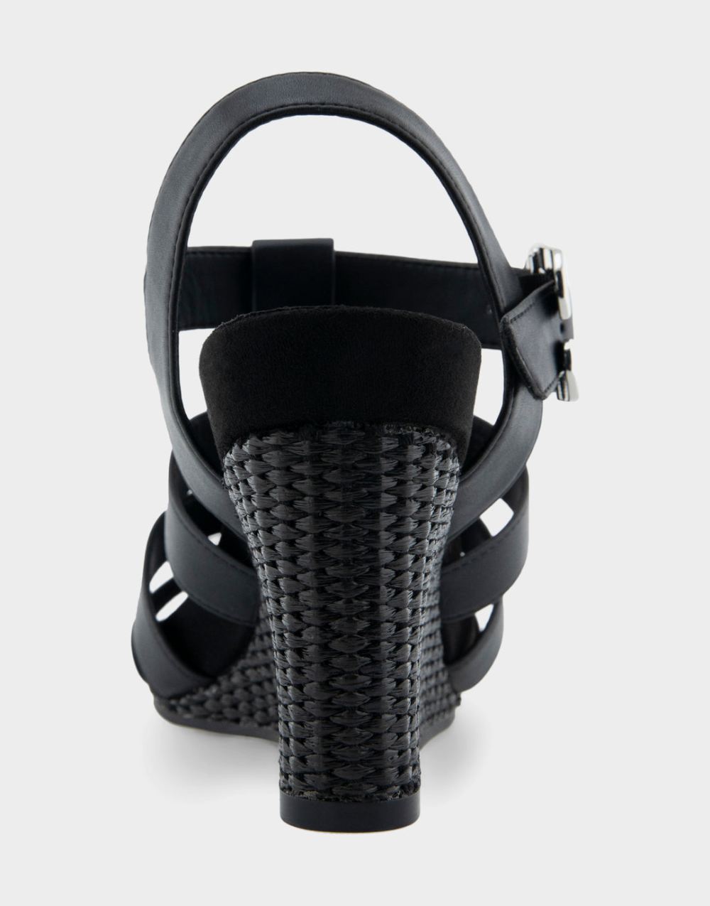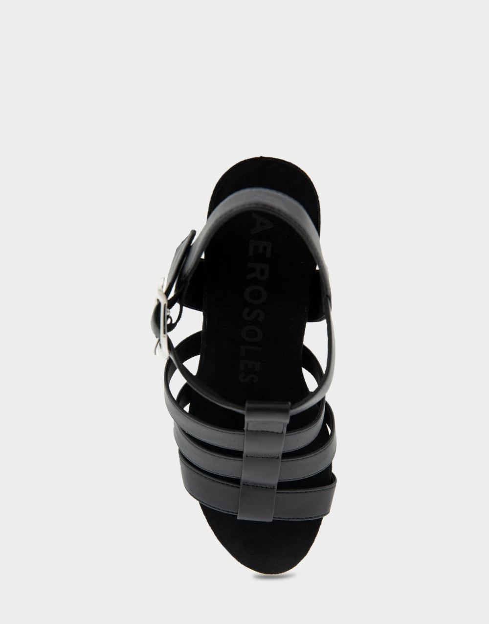 Aerosoles Women's Paige Black Faux Leather Caged Footbed Wedge SandalkFNvoH
