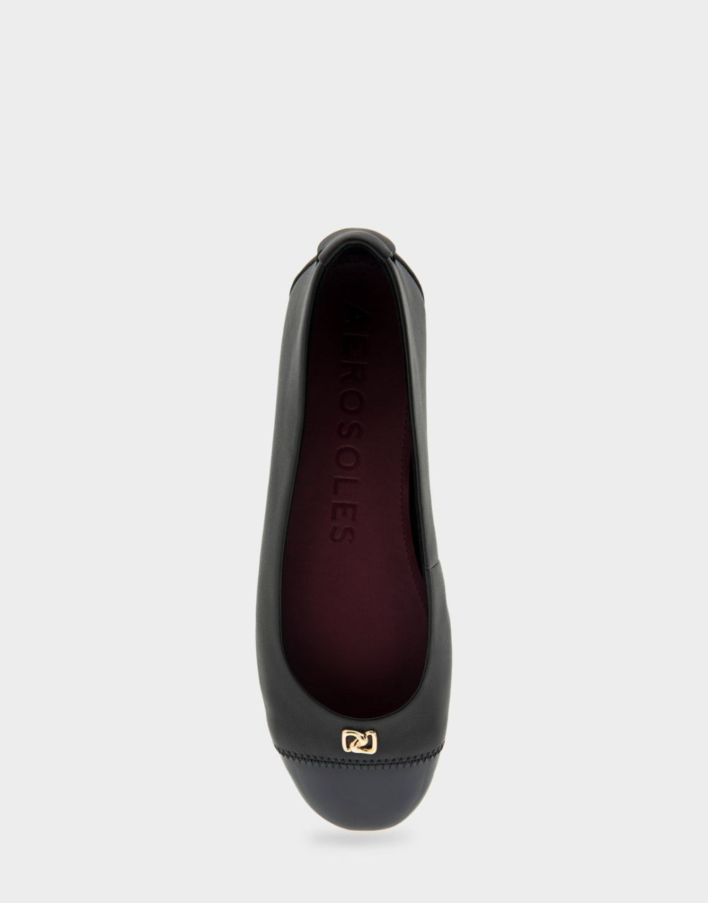 Aerosoles Women's Piper Black Genuine Leather Hidden Wedge Ballet Flatcxhcw3