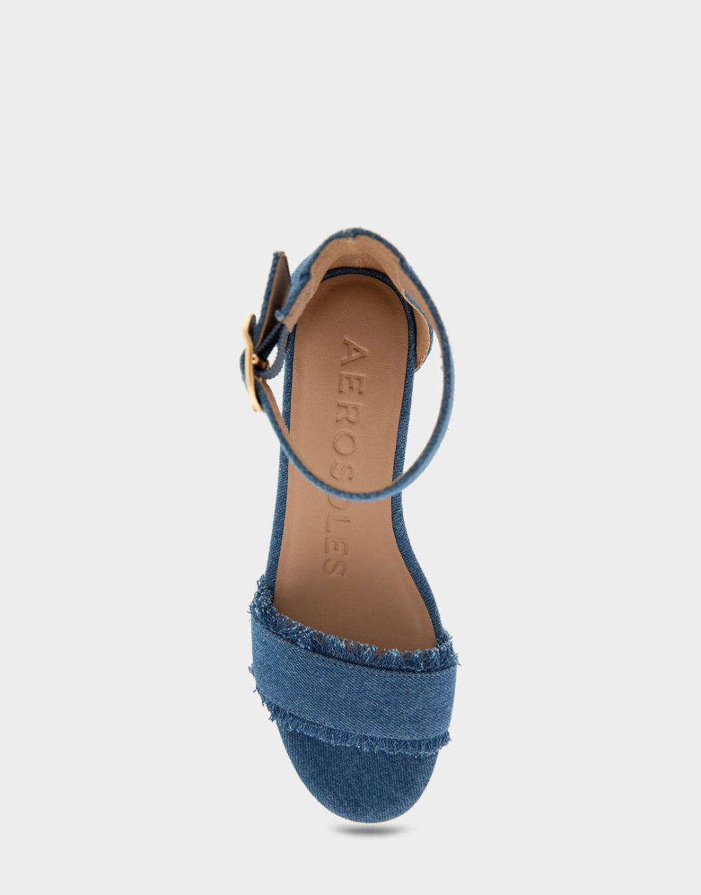 Aerosoles Women's Willis Denim Fabric Ankle Strap Mid Wedge Sandal