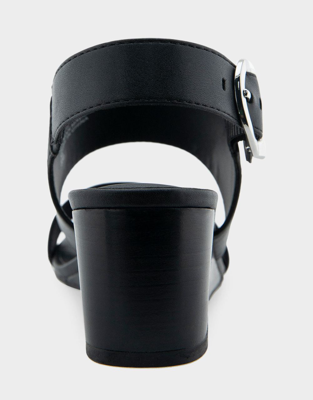 Aerosoles Women's Worth Black Faux Leather Buckle Back Mid Wedge Sandal