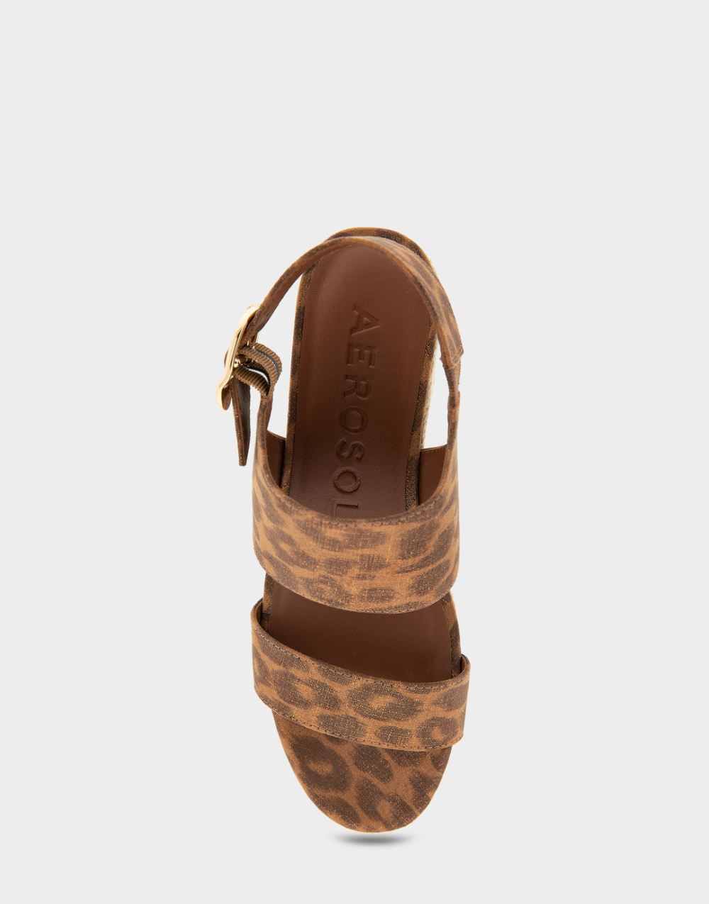 Aerosoles Women's Worth Leopard Metallic Faux Suede Buckle Back Mid Wedge SandalxU21Gw