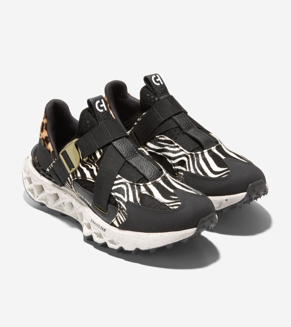• All-terrain sneaker crafted in leather, hair calf, and mixed material uppers.