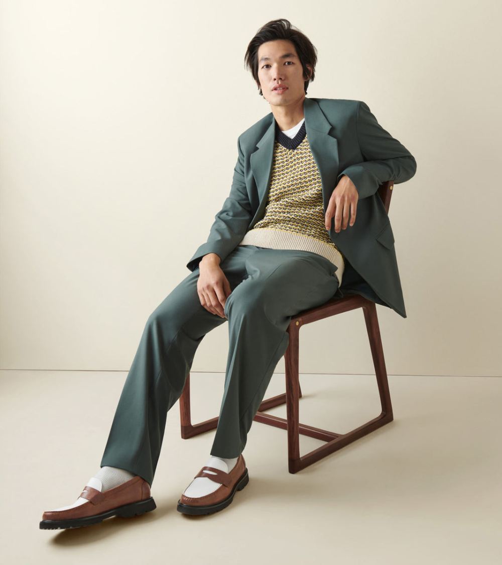 • Classic penny loafer with round toe and modern lug outsole.