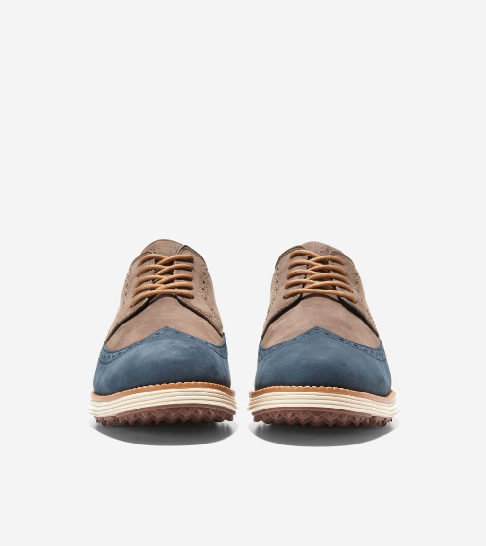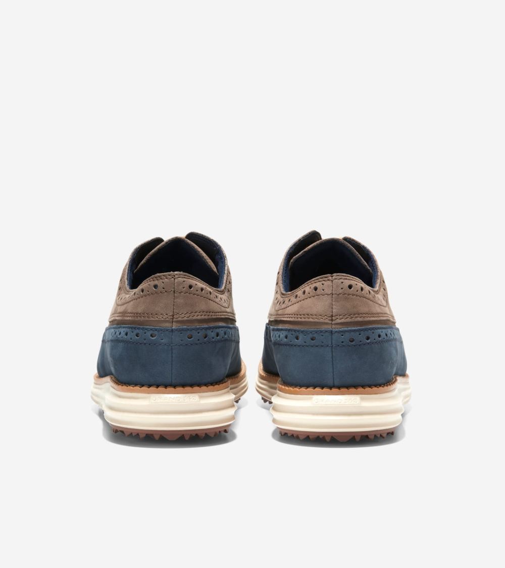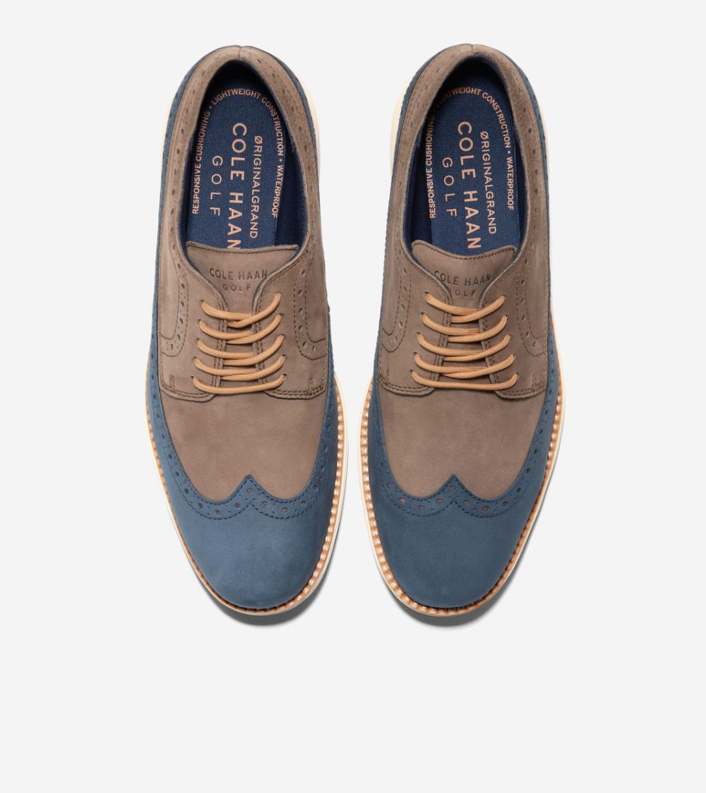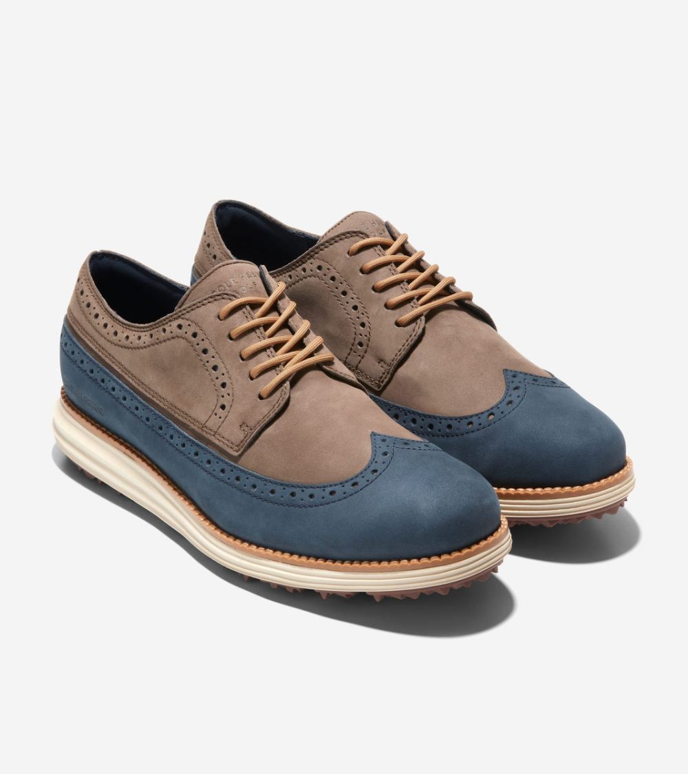 Cole Haan Free Shipping Men's OriginalGrand Wingtip Oxford Golf Shoe - Truffle-Navy Blazer-Alabaster Gleam