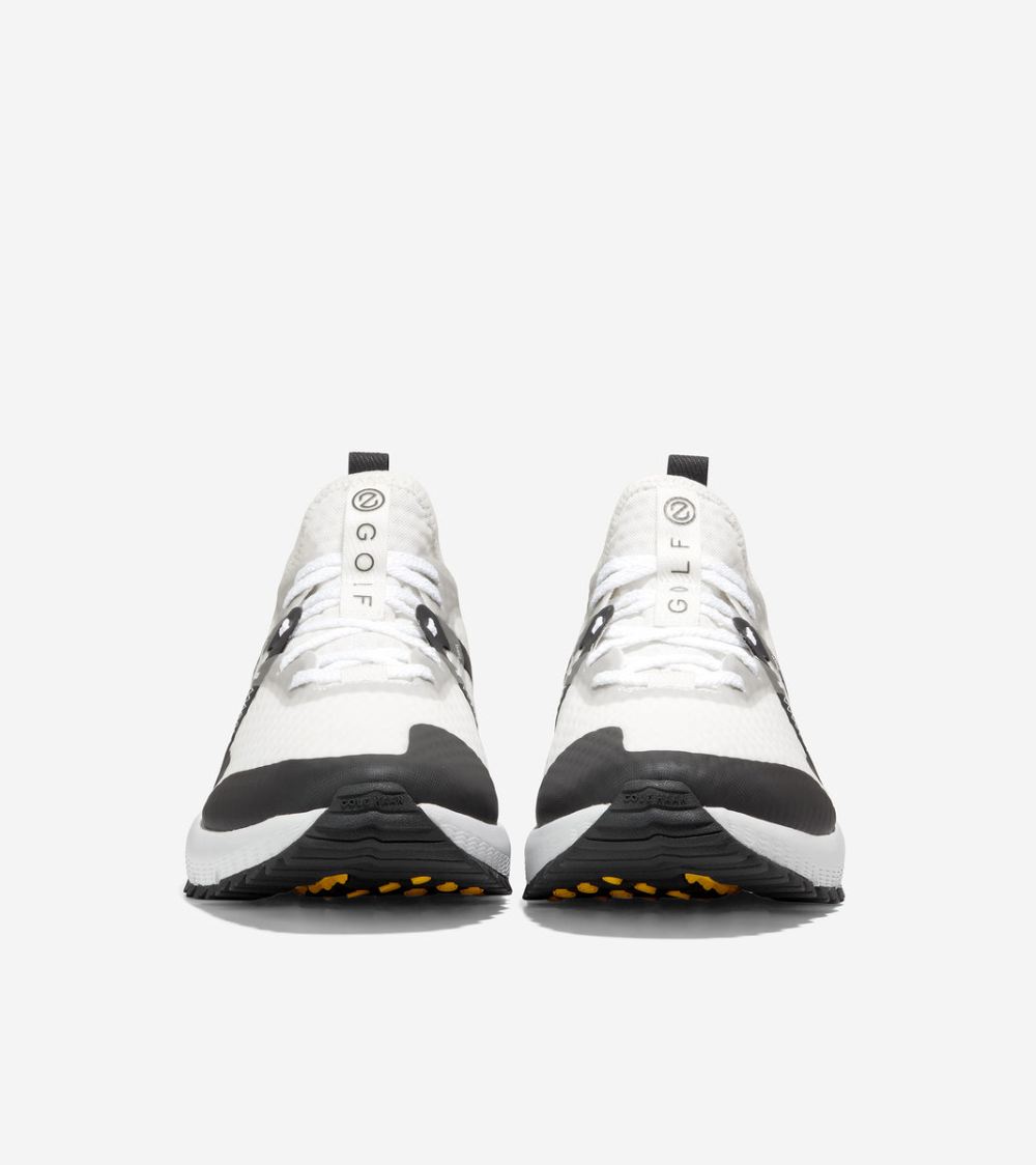All-day versatility is the name of the game when it comes to the ZEROGRAND Overtake Golf Shoe. After you lace them up for your morning round, you won't want to take them off the rest of the day. This golf-sneaker hybrid features a water-resistant mesh bootie with custom stretch zones for a breathable sock-fit feel, making them your go-to shoes for inclement days on the course or simply everyday life. An all-over water-resistant and cleanable skin covers the shoe to keep you dry through the round. An engineered GRANDFOAM midsole provides responsive cushioning for multi-layered comfort, along with supportive yet lightweight construction. The performance outsole is equipped with a flexible, ergonomically designed tread pattern ensuring traction through your swing and allows you to move with confidence over any terrain.