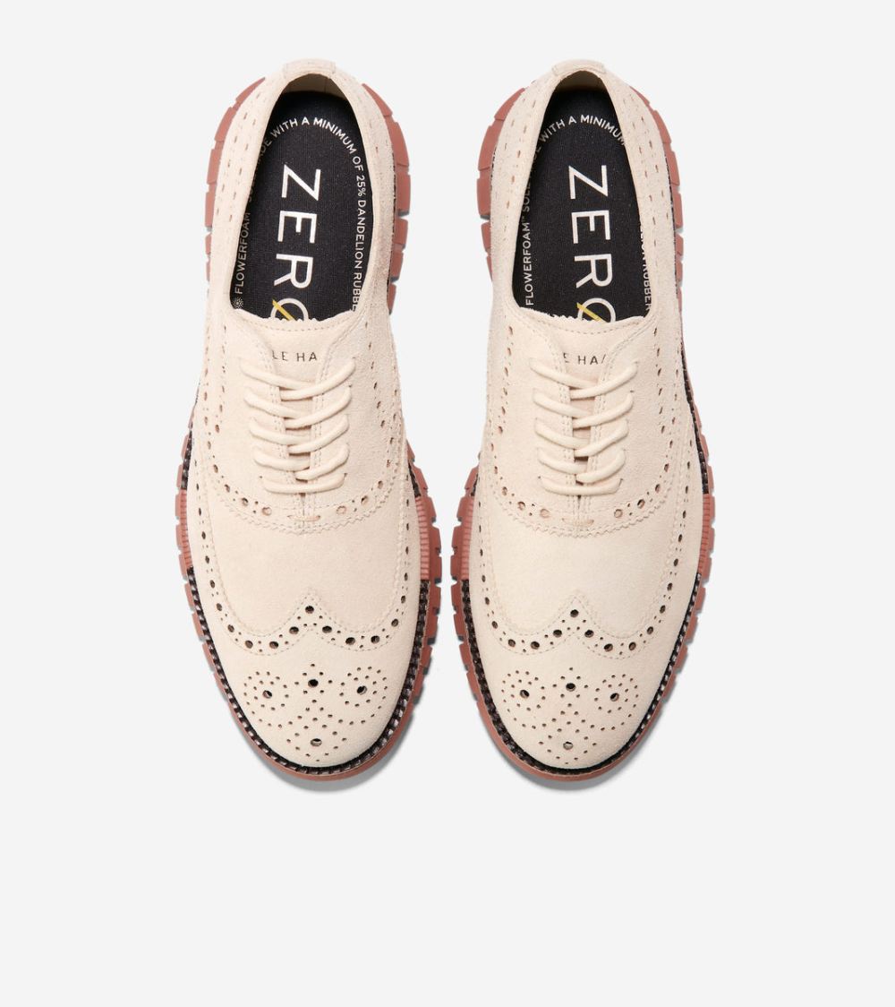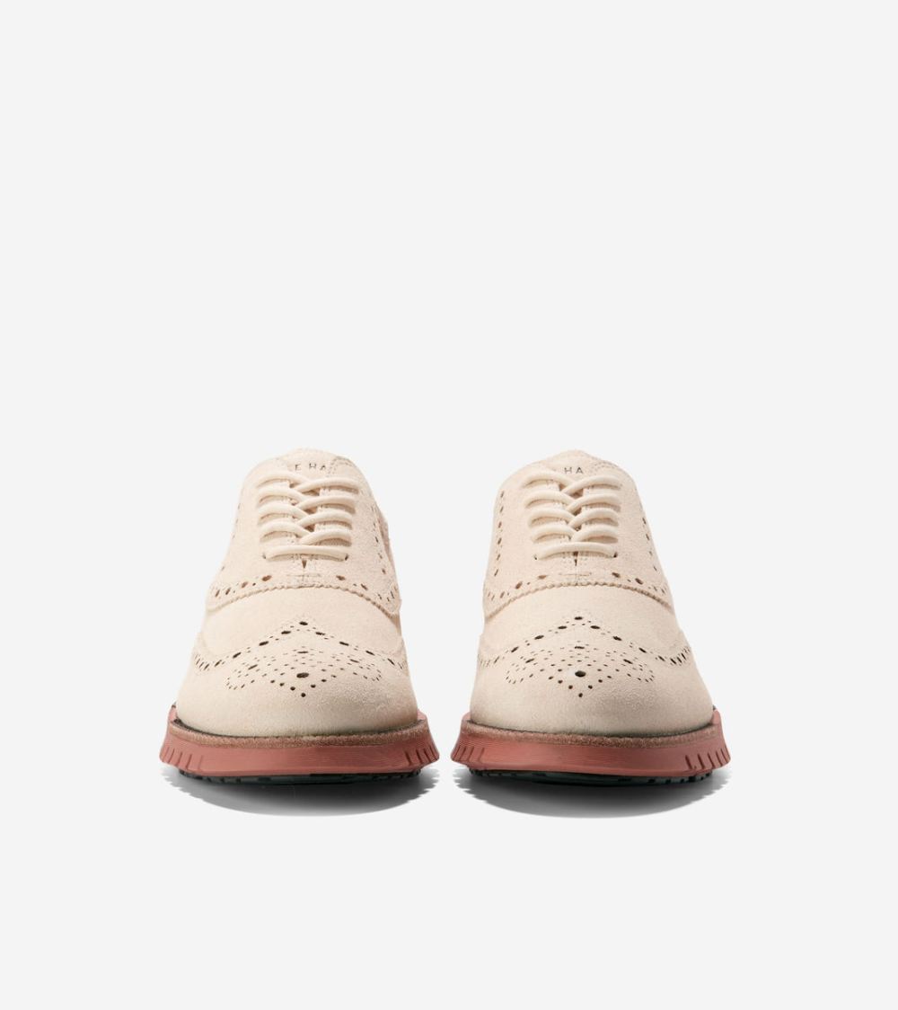Cole Haan Free Shipping Men's ZEROGRAND Remastered Unlined Wingtip Oxfords - Whitecap Gray-Dark Chocolate-Red Burl