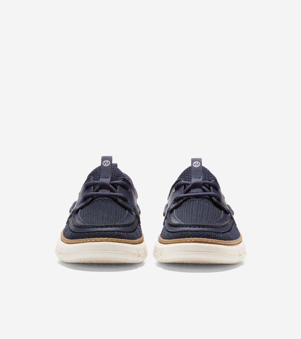 Chart your own course. Introducing the 4.ZEROGRAND Regatta Boat Shoe in navy. Unparalleled performance and effortless styleor life on and off the water. This performance boating shoe was built to tackle the rigorous needs of sailors and beach enthusiasts alike. The breathable mesh upper is made from recycled ocean plastic and provides quick drying, ventilation. The Tidalflow Water Drainage System accelerates water removal, while the Anchortrac Outsole provides traction in both dry and wet conditions, so you have peace of mind with every step.