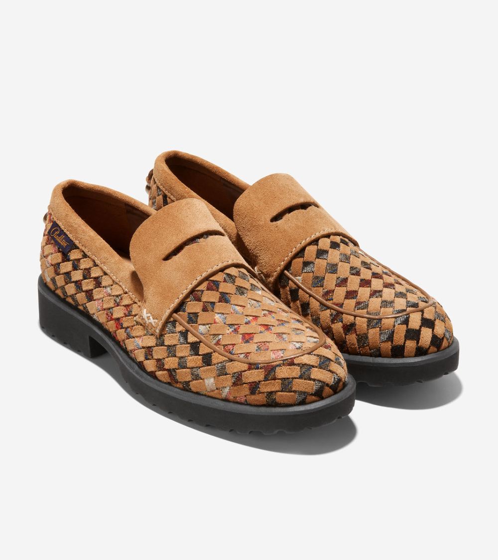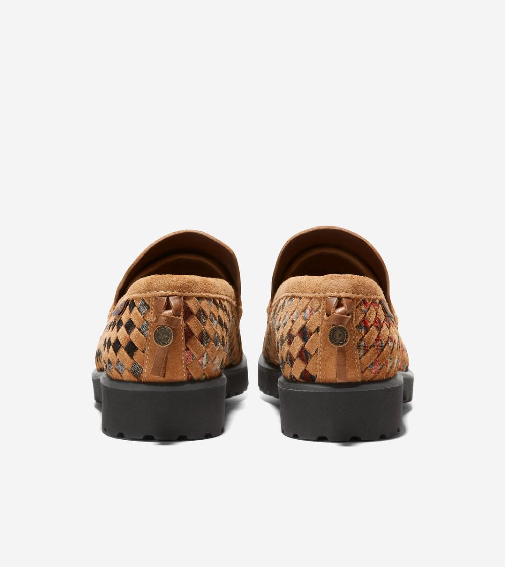 • Penny loafer silhouette crafted in Pendleton wool/suede woven uppers.