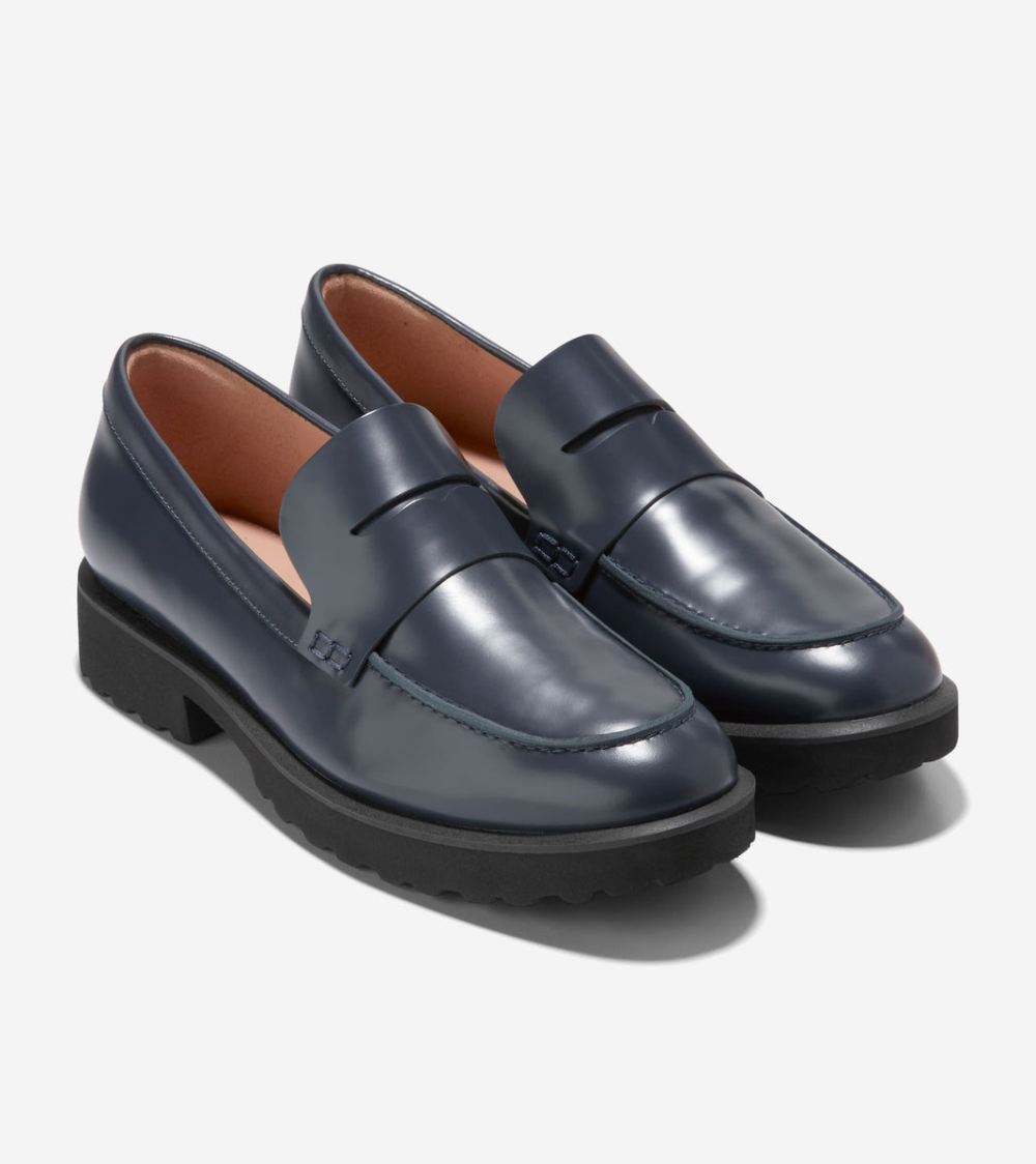Bridging the past to present, the Geneva Loafer takes our classic Cole Haan penny loafer silhouette and adds an of-the-moment lug outsole. Wrapped in box calf leather, this snappy style is ideal for inclement days when you still want to look put together. Finished with GRANDFOAM cushioning for luxurious comfort.