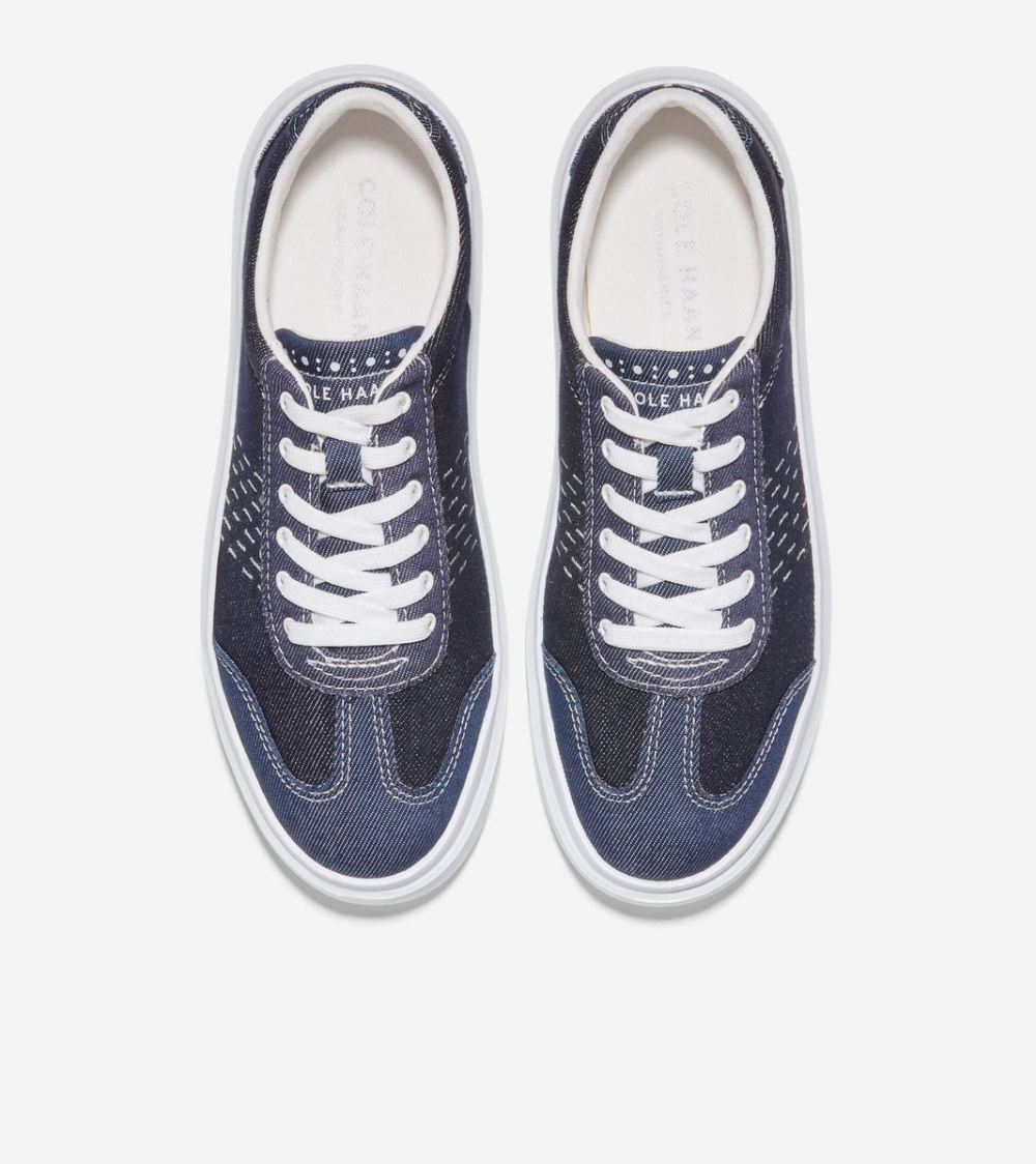 Cole Haan Free Shipping Women's GrandPro Rally Canvas T-Toe Sneaker - Blue Denim-Optic White