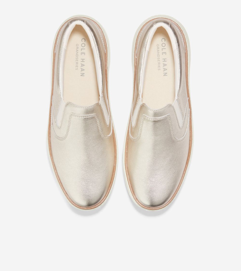 Cole Haan Free Shipping Women's GrandPro Topspin Slip-On Sneaker - Gold Talca-Ivory